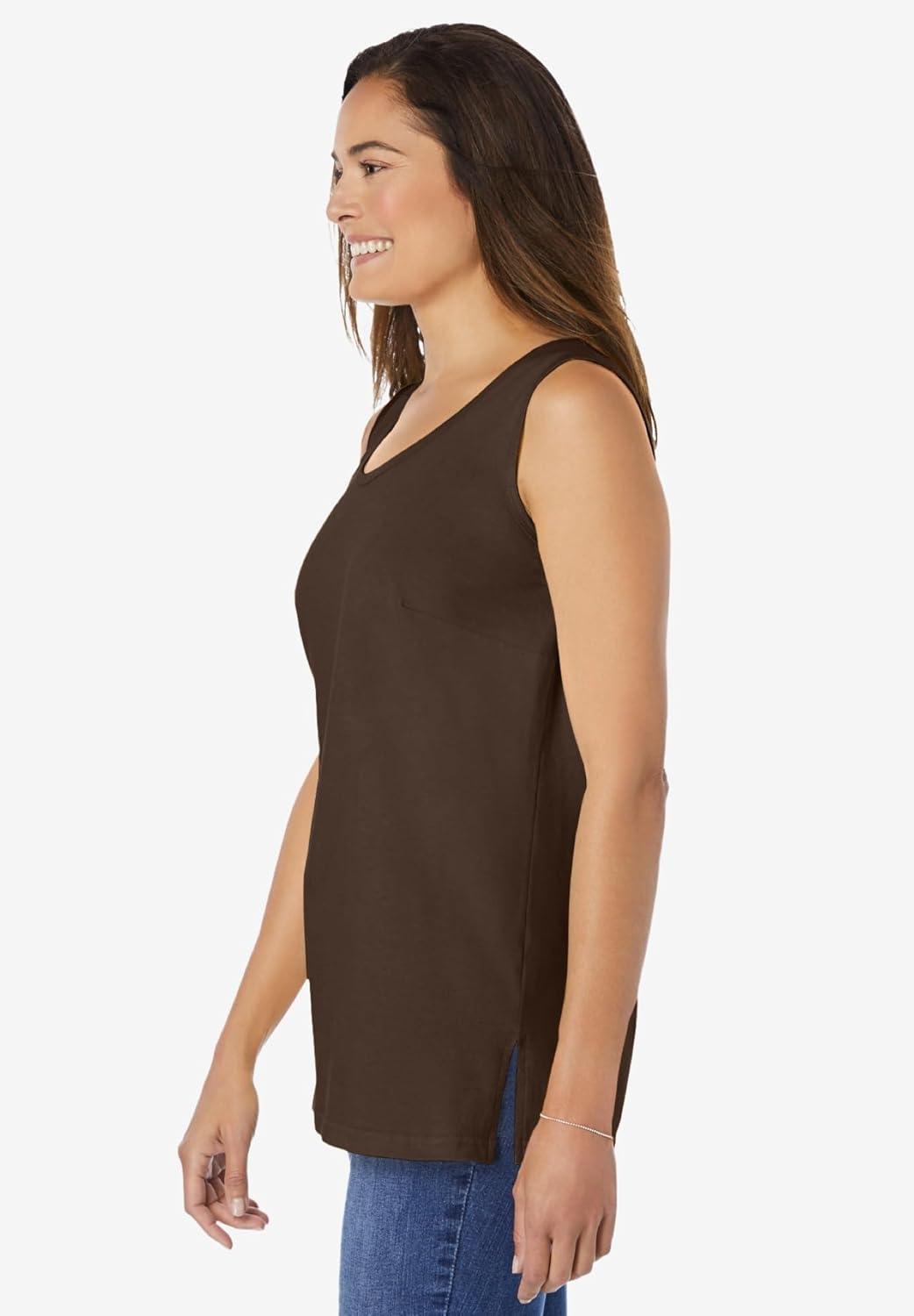 Woman Within Plus Size Perfect Scoopneck Tank (Petite Available)(Chocolate)