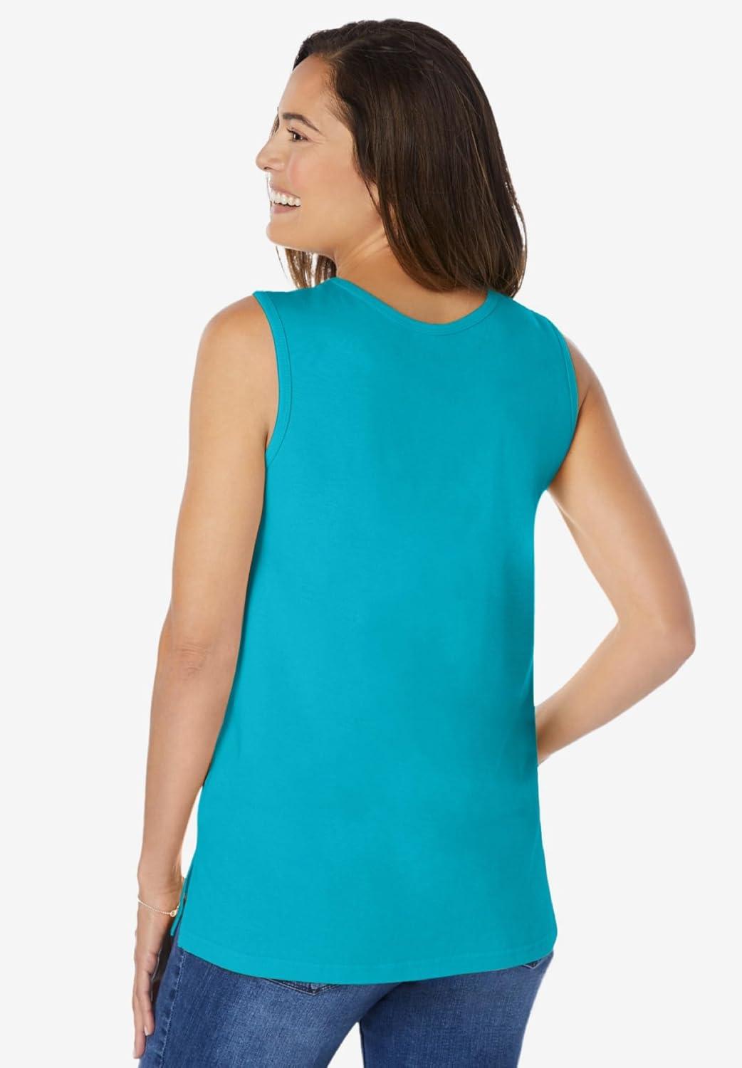 Woman Within Plus Size Perfect Scoopneck Tank (Petite Available)(Pretty Turquoise)