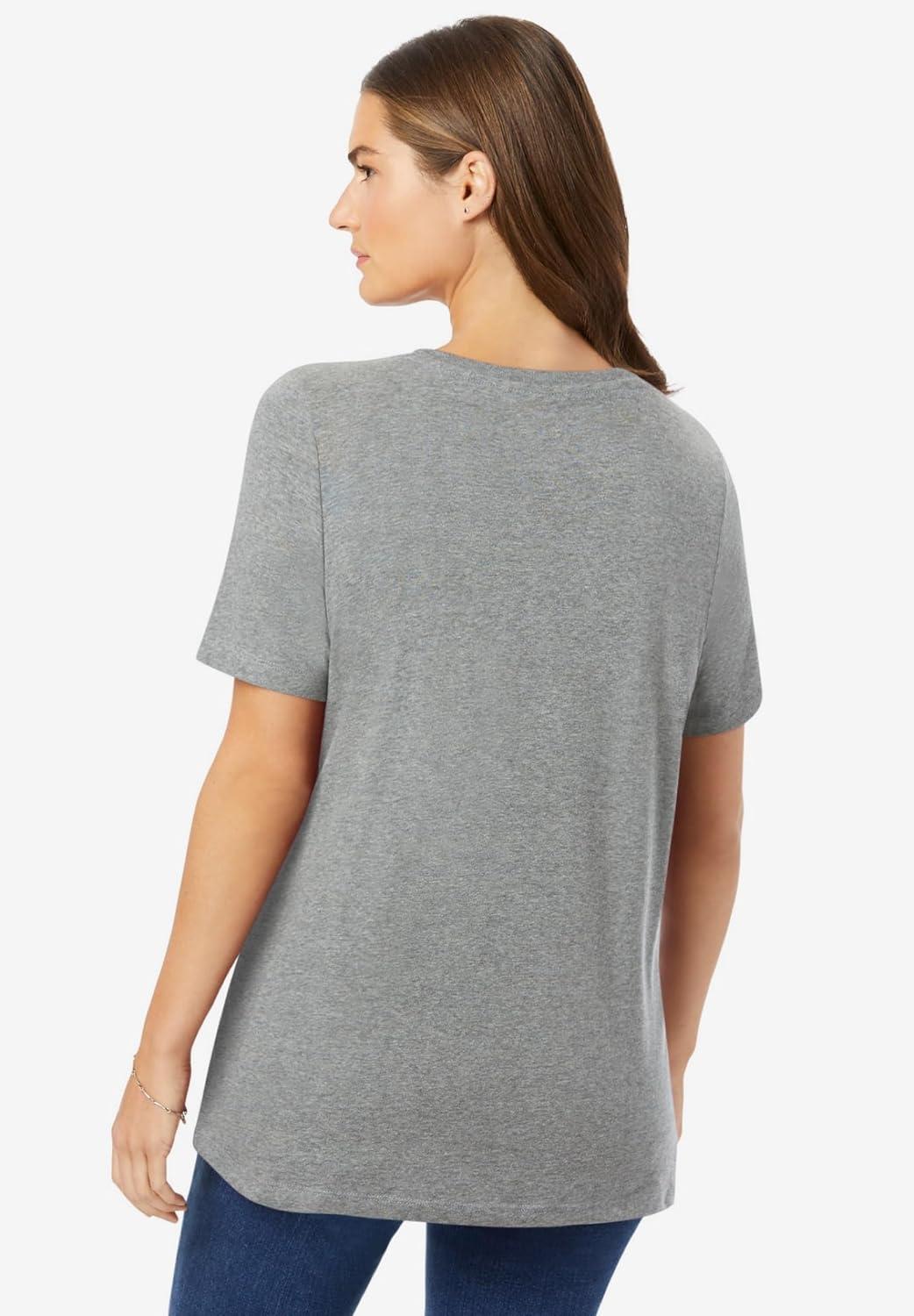 Woman Within Plus Size Perfect Short-Sleeve Crewneck Tee (Petite Available)(Classic Medium Heather Grey)