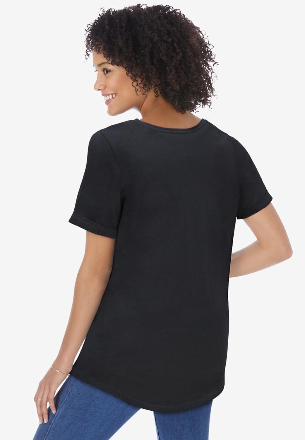 Woman Within Plus Size Cuffed Americana Print Tee(Black Butterfly Star)
