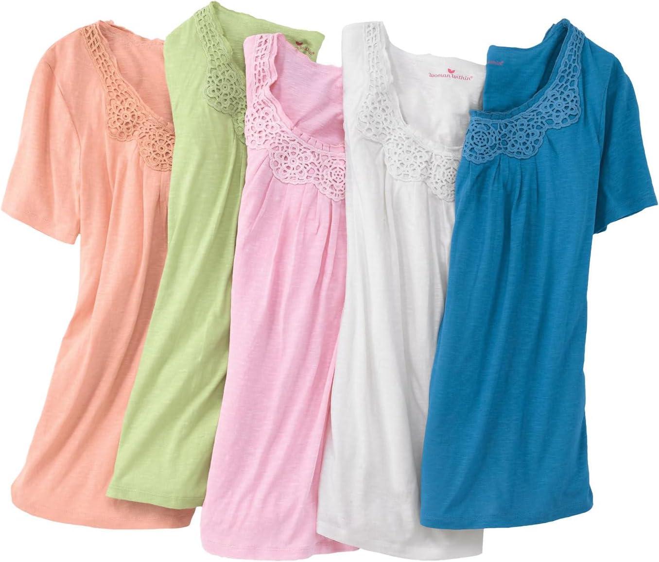 Woman Within Plus Size Crochet-Trim Knit Top(Sweet Coral)