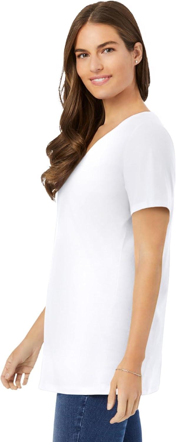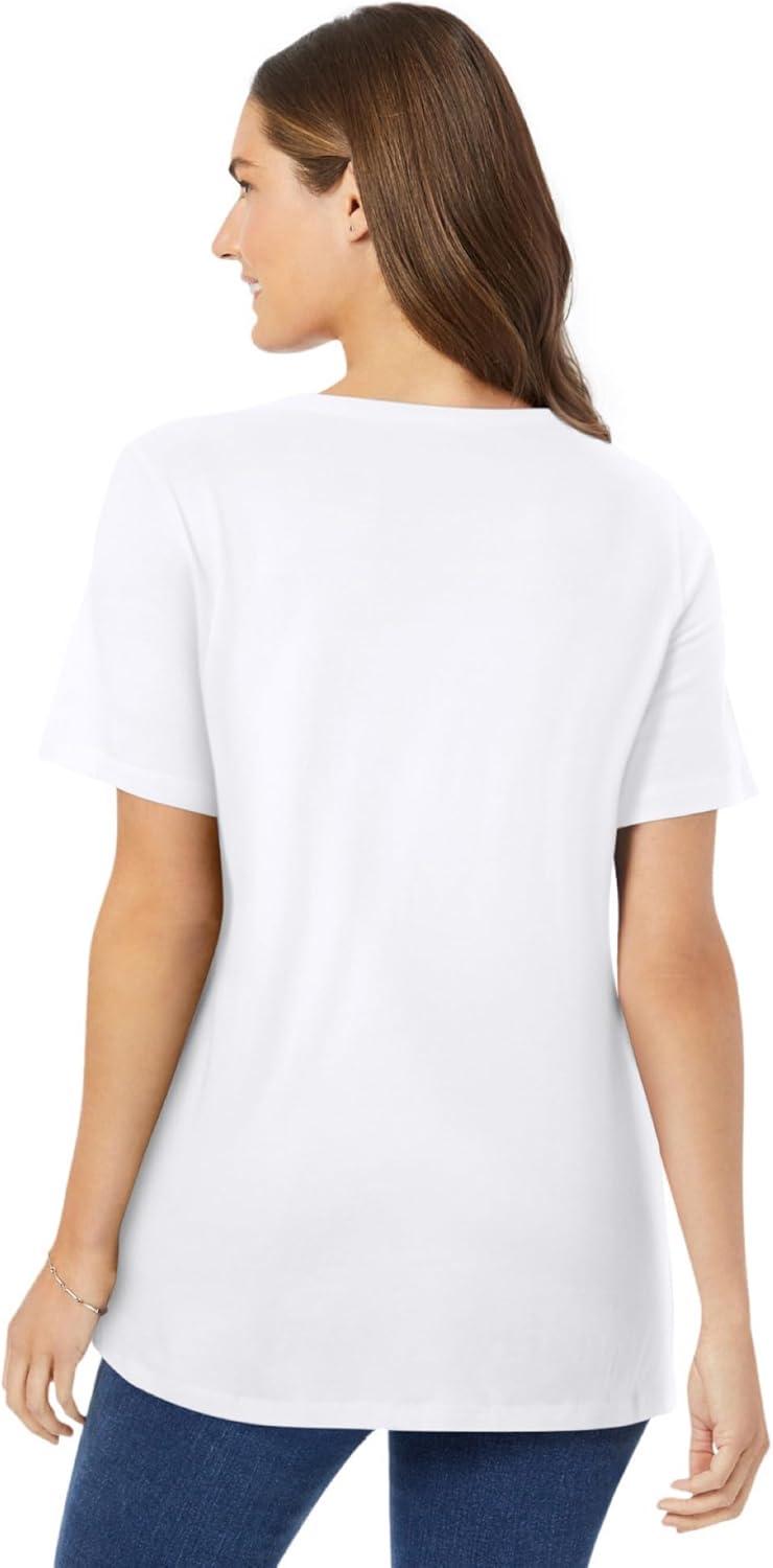 • Woman Within Plus Size Perfect Short-Sleeve V-Neck Tunic(White)