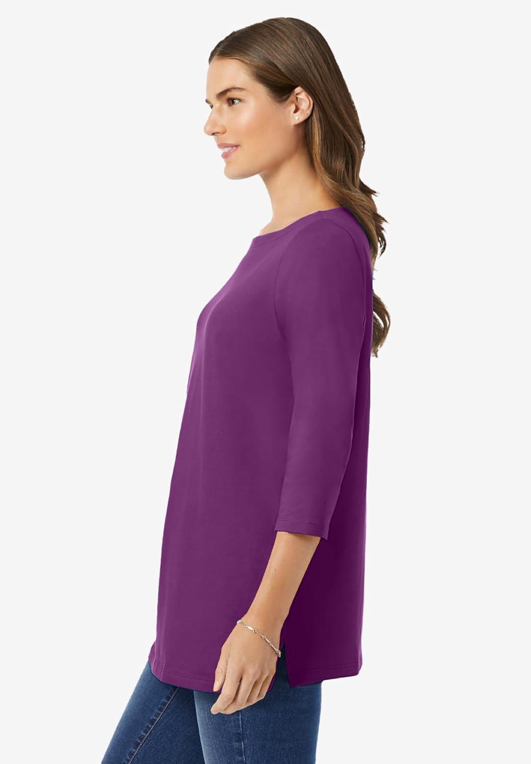 • Woman Within Plus Size Perfect Three-Quarter Sleeve Boatneck Tee(Plum Purple)