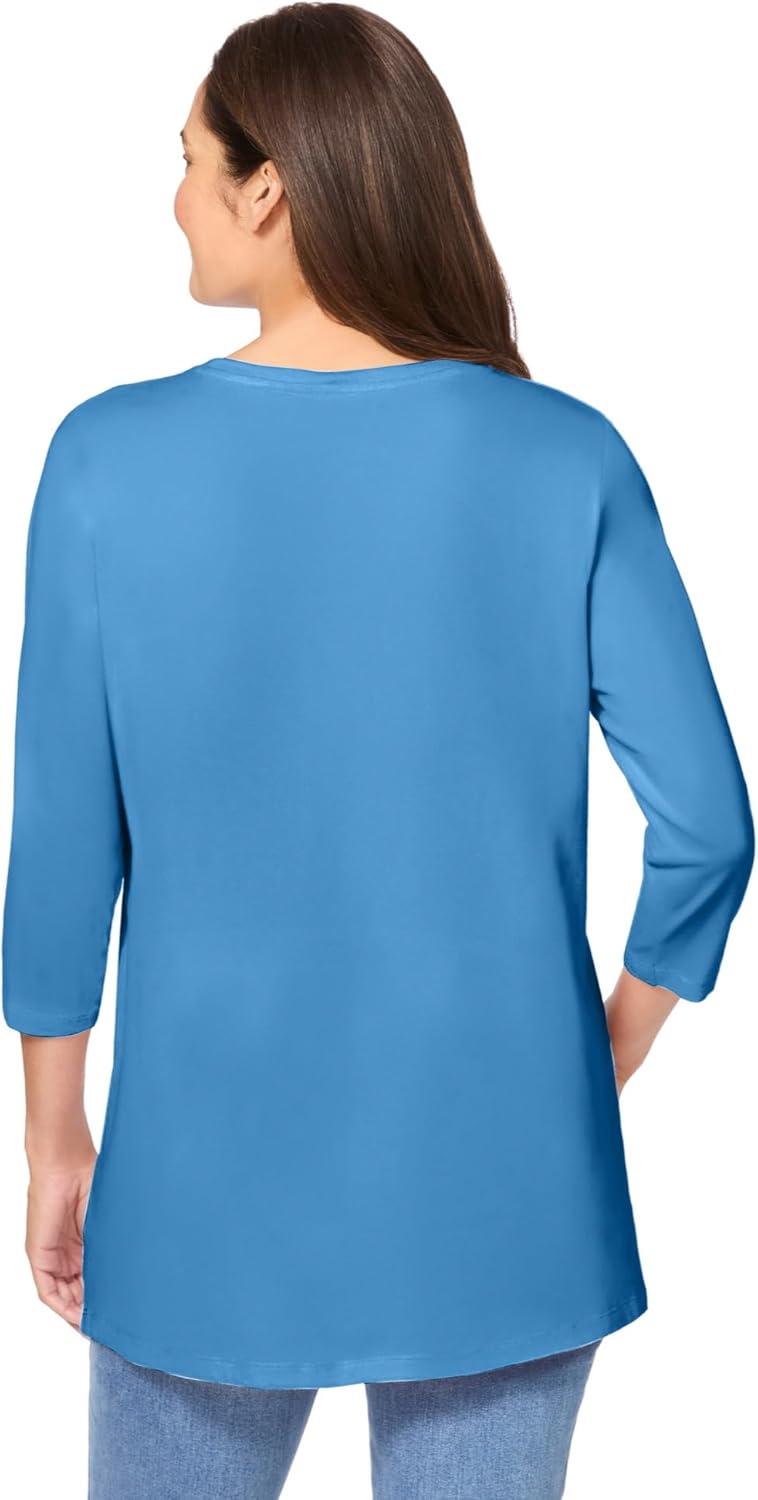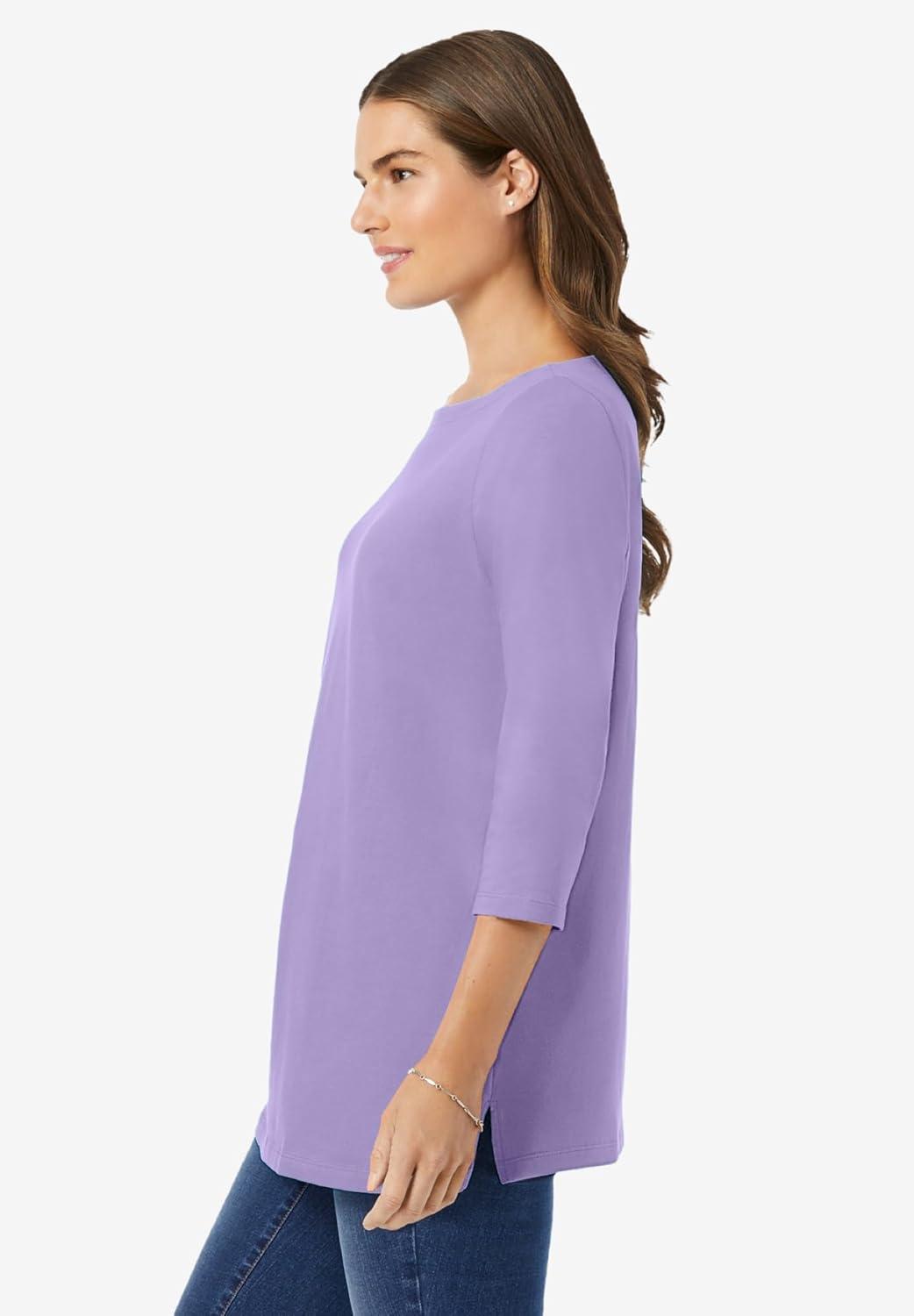 Woman Within Plus Size Perfect Three-Quarter Sleeve Boatneck Tee(Soft Iris)