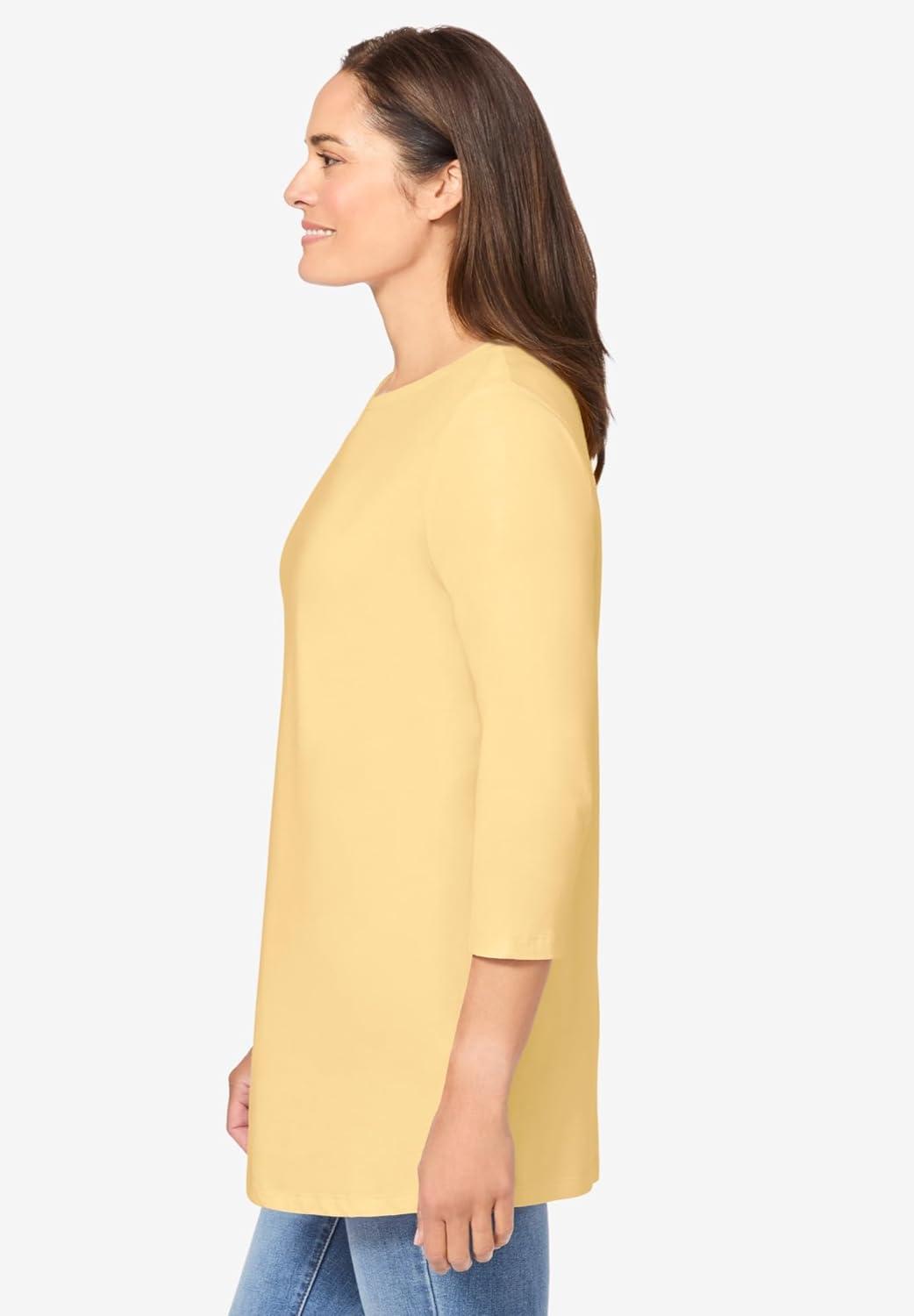 • Woman Within Plus Size Perfect Three-Quarter Sleeve Crewneck Tee(Banana)