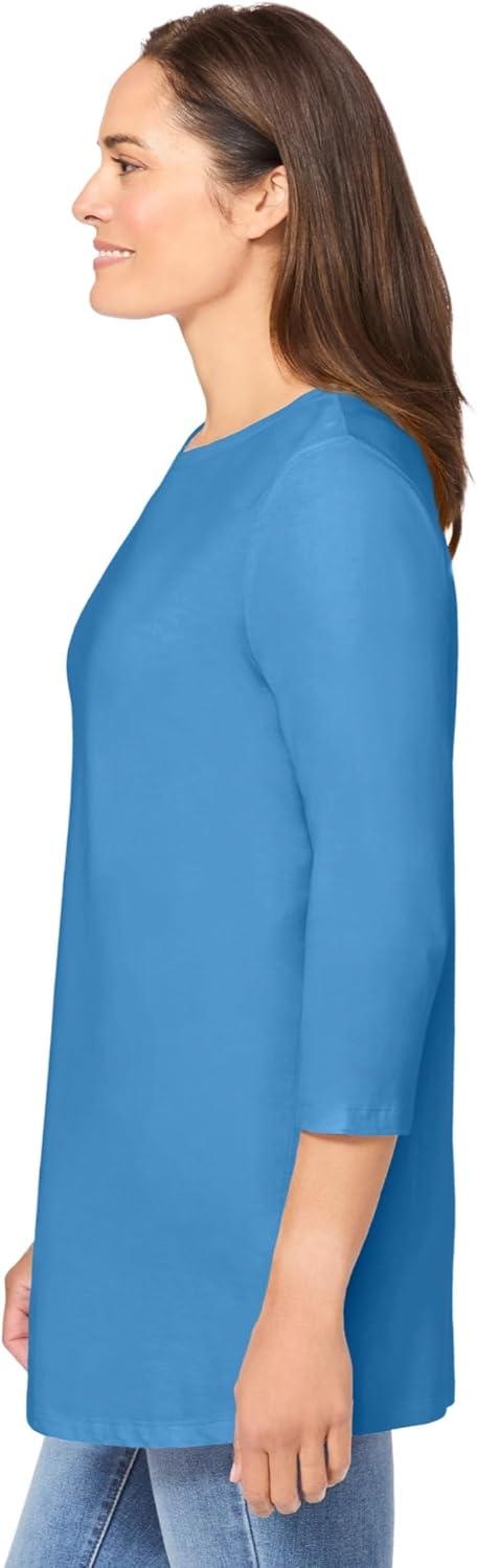 Woman Within Plus Size Perfect Three-Quarter Sleeve Boatneck Tee(Seamist Blue)