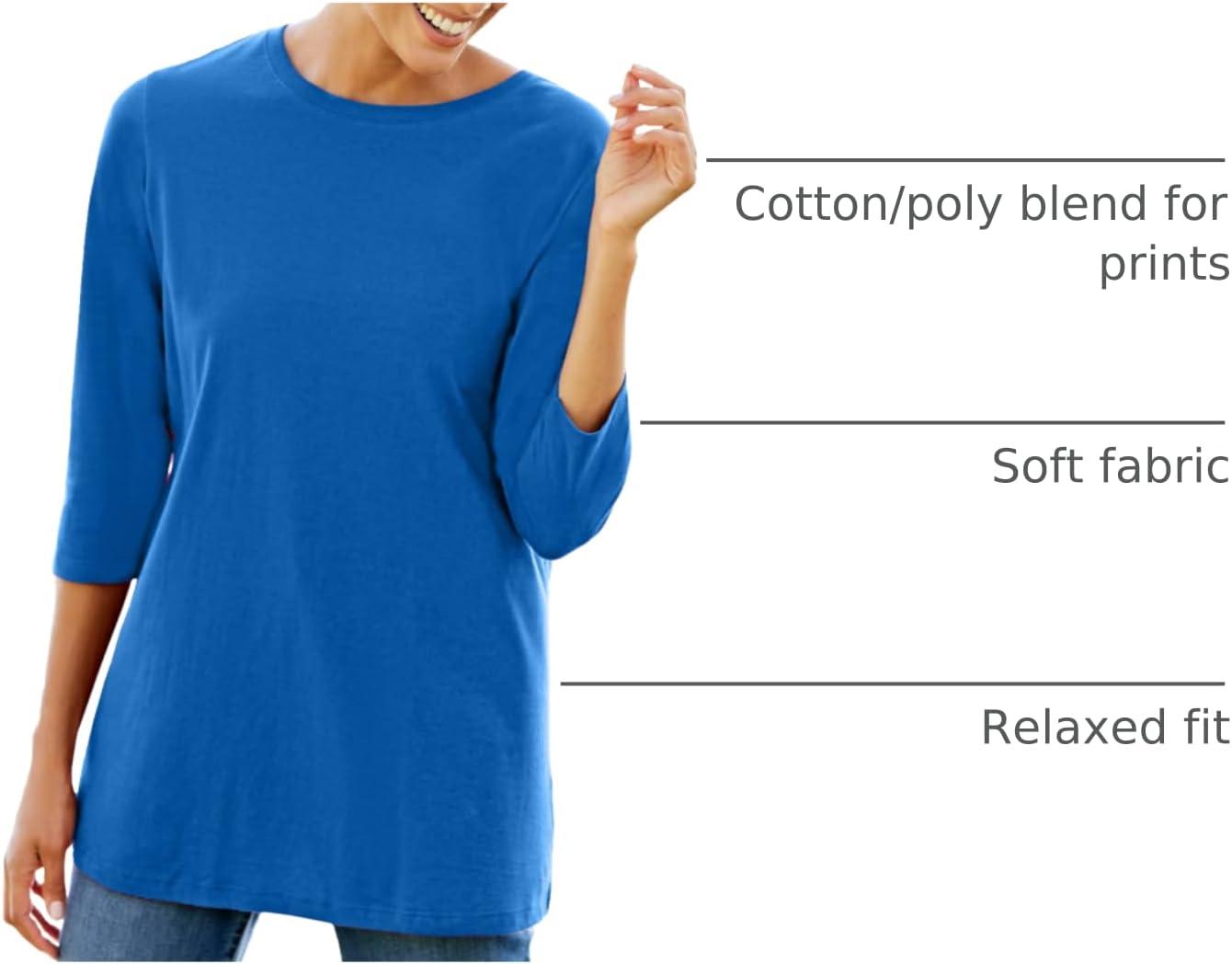 Woman Within Plus Size Perfect Three-Quarter Sleeve Crewneck Tee(Bright Cobalt)