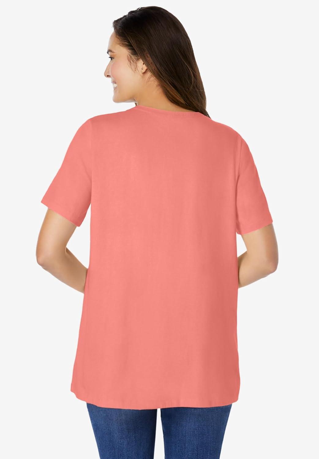 Woman Within Plus Size Eyelet Henley Tee(Sweet Coral)