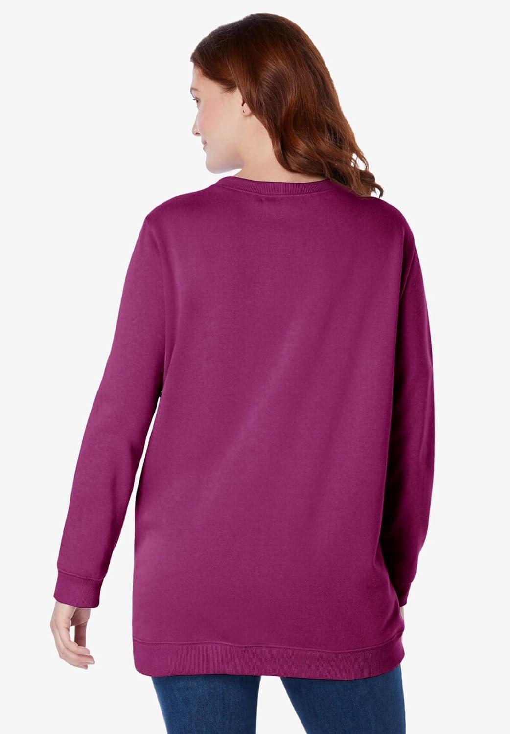 Woman Within Plus Size Fleece Sweatshirt(Deep Claret Floral Embroidery)
