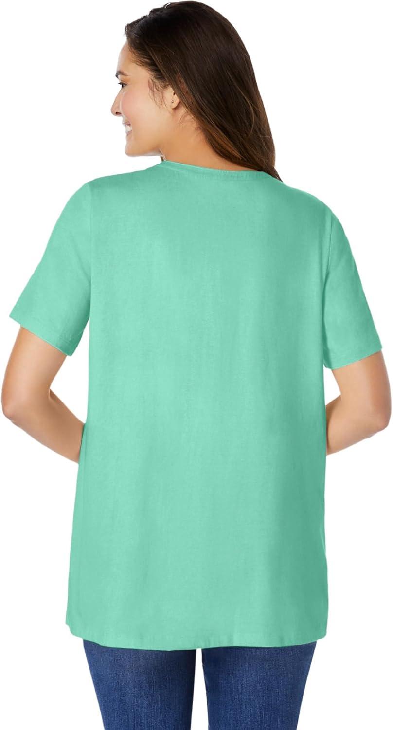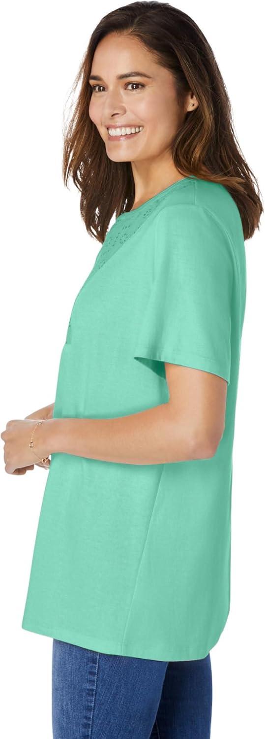 Woman Within Plus Size Eyelet Henley Tee(Pale Seafoam)