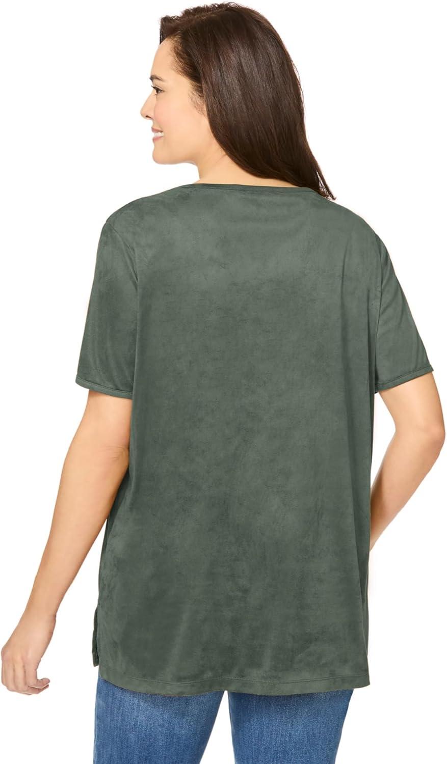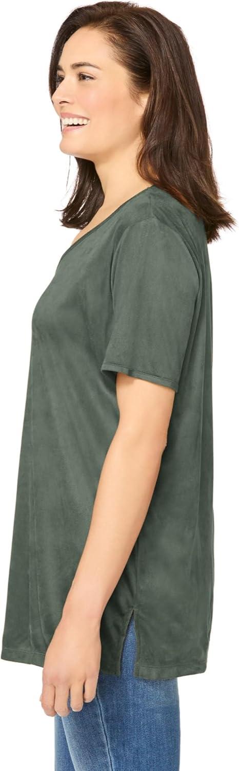 • Woman Within Plus Size Faux Suede Tee(Pine)