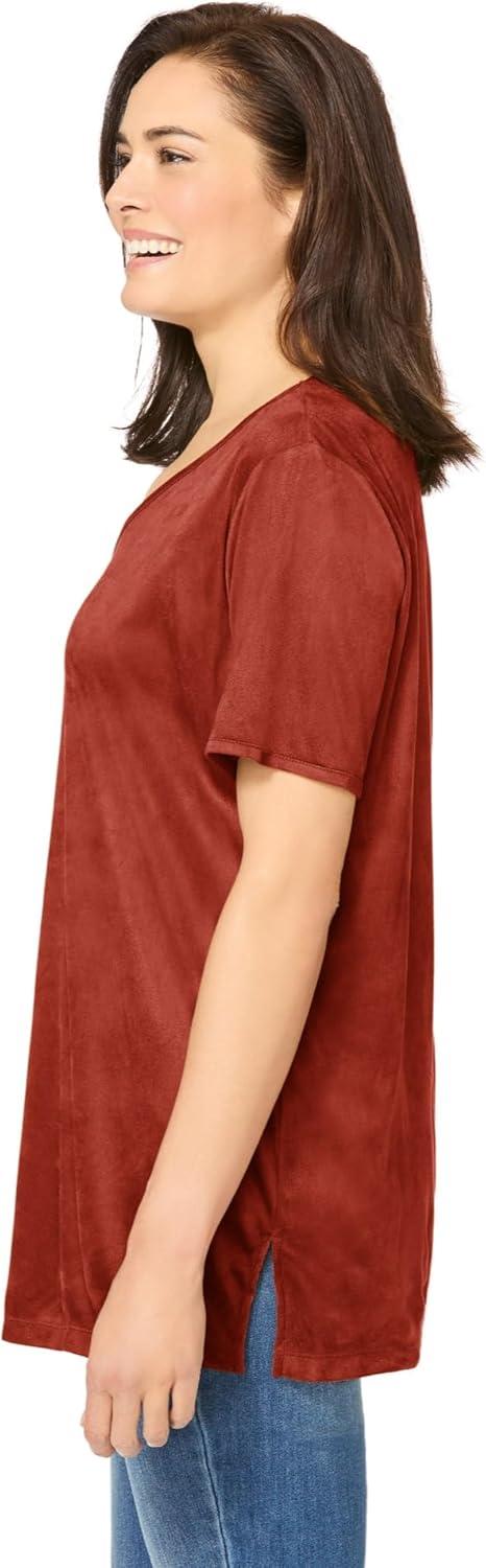 Woman Within Plus Size Faux Suede Tee(Red Ochre)