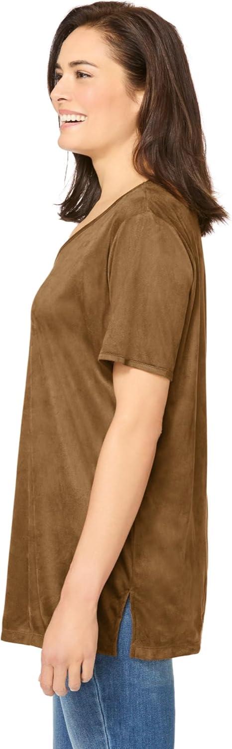 Woman Within Plus Size Faux Suede Tee(Toffee)