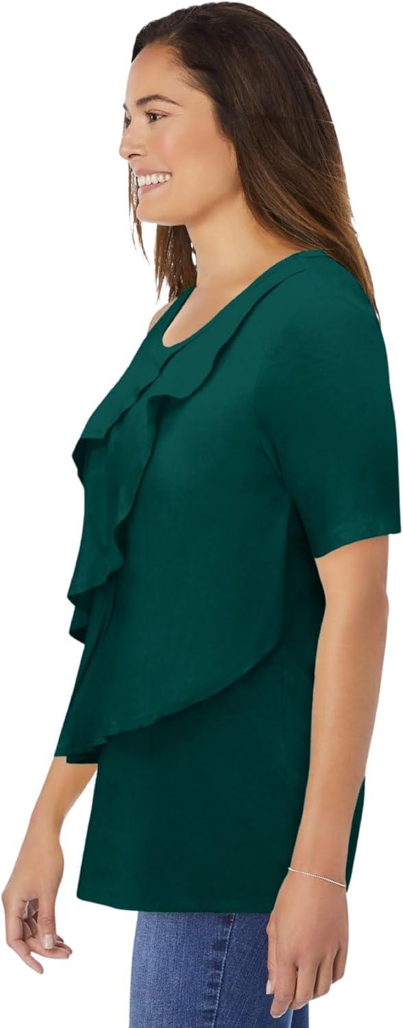 • Woman Within Plus Size Ruffle Tee(Emerald Green)