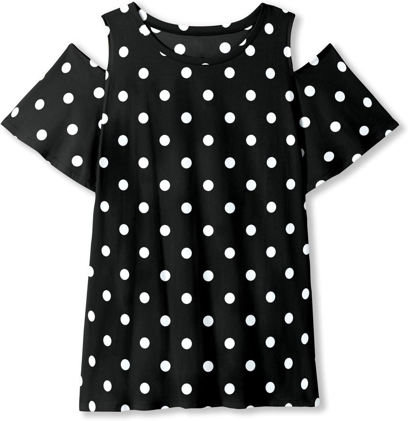 Woman Within Plus Size Short-Sleeve Cold-Shoulder Tee(Black White Dot)