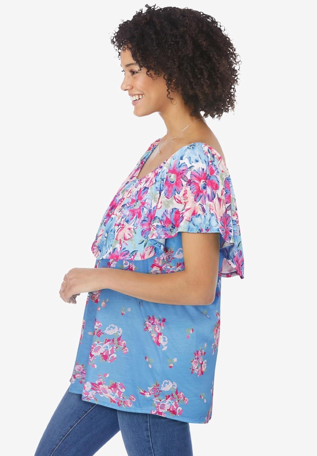 Woman Within Plus Size Ruffle Tee(French Blue Mixed Bouquet)