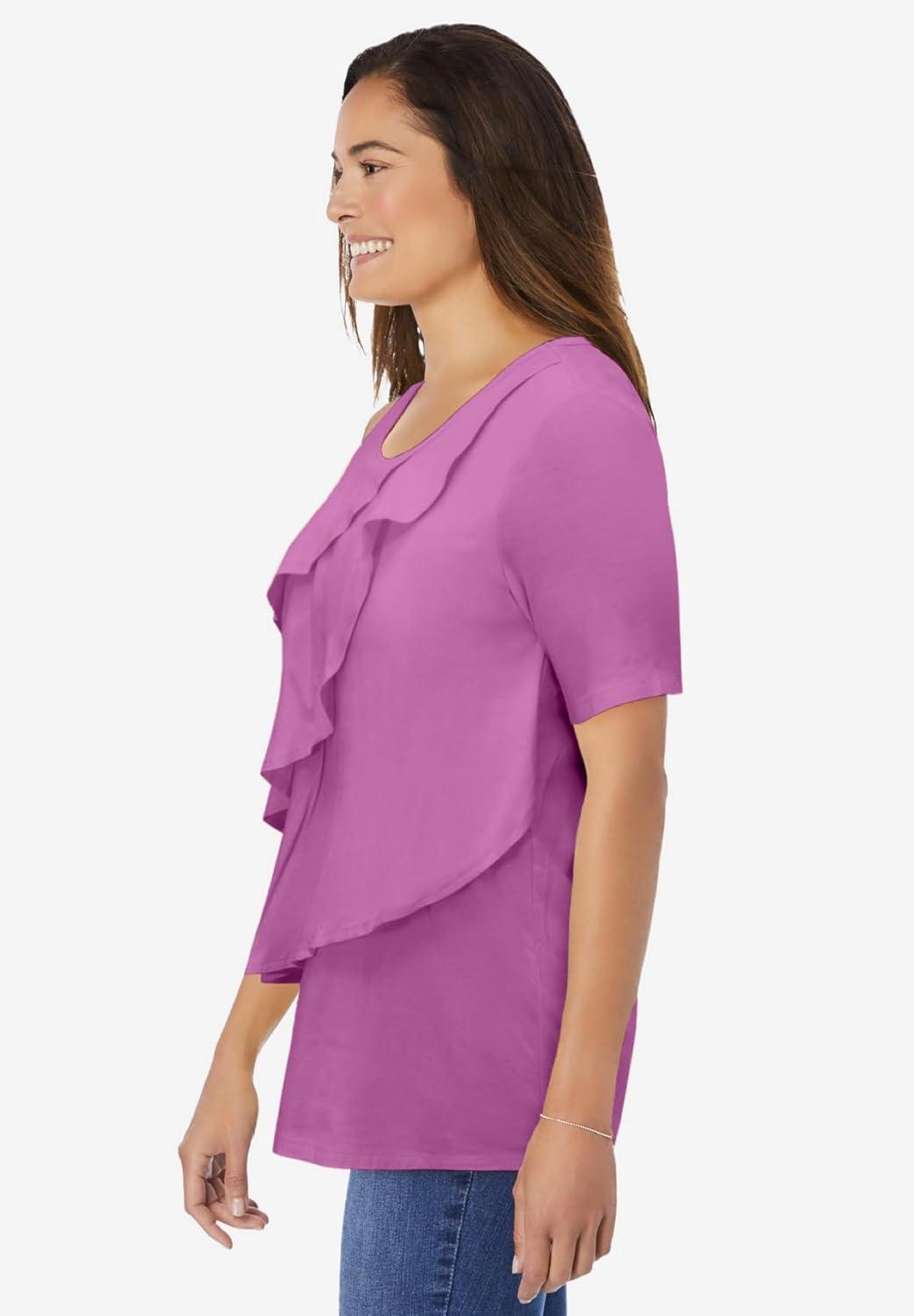 Woman Within Plus Size Ruffle Tee(Pretty Orchid)