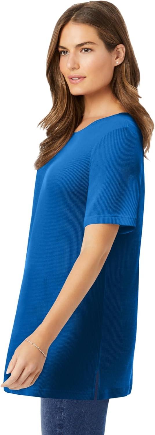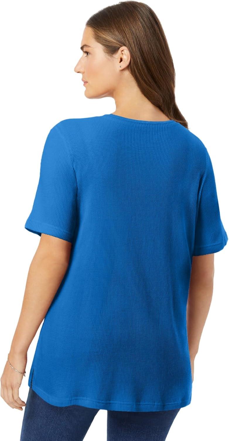 Woman Within Plus Size Waffle Thermal Satin Trim Tee(Bright Cobalt)