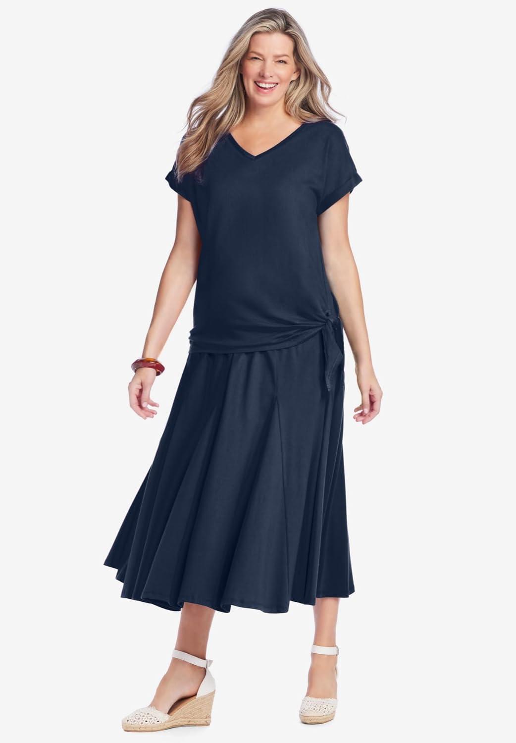 Woman Within Plus Size Side Knot Tee Dress(Pine)