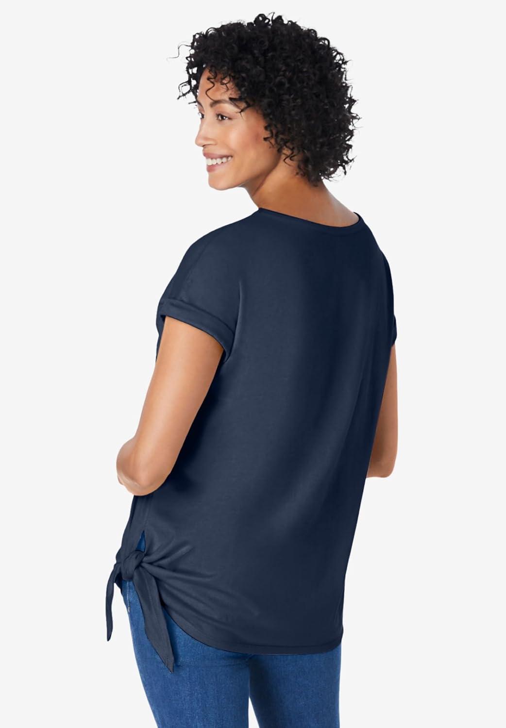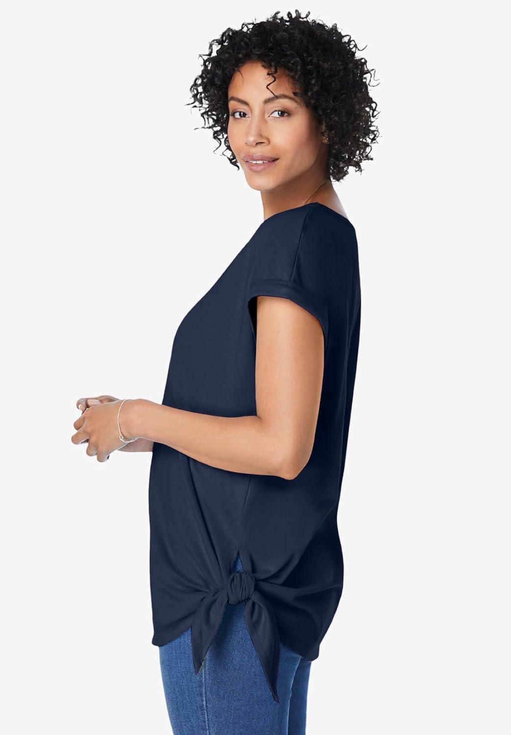 Woman Within Plus Size Side Tie Knit Tee(Navy)