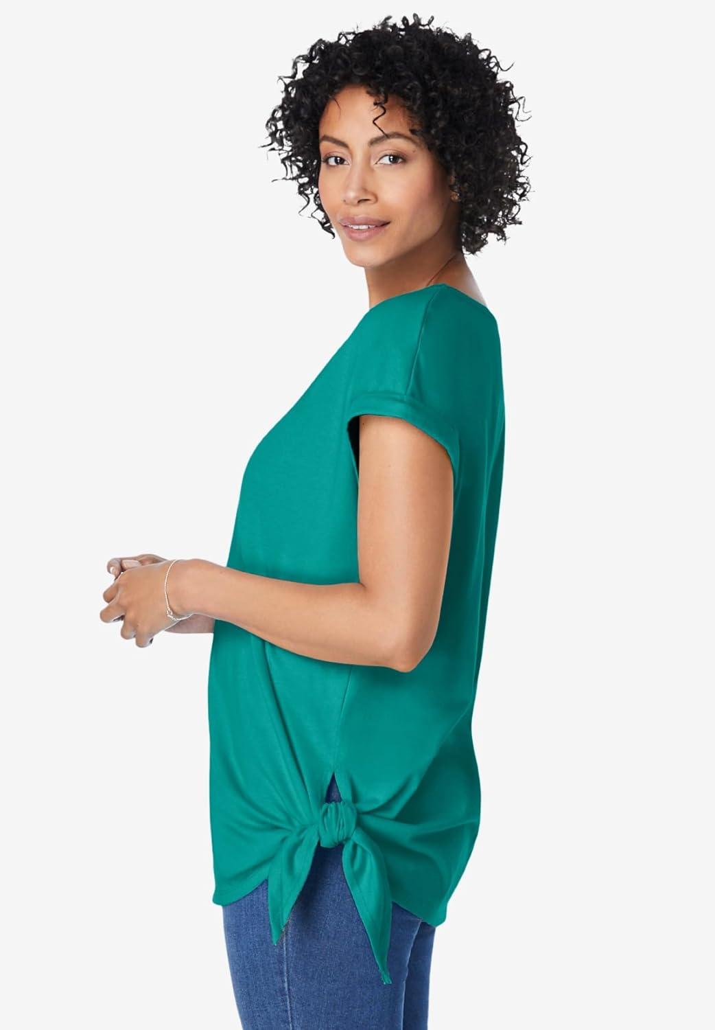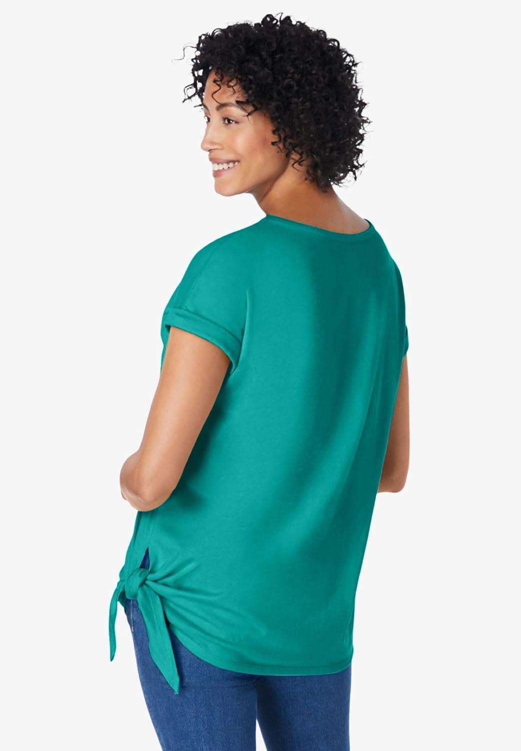 Woman Within Plus Size Side Tie Knit Tee(Waterfall)