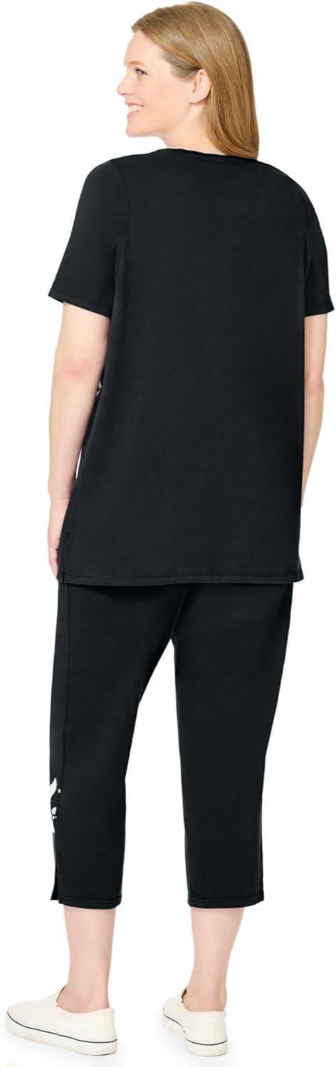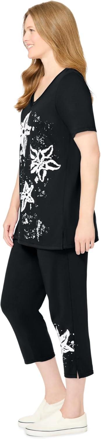 Woman Within Plus Size Starfish Tee and Capri Set(Black Starfish)