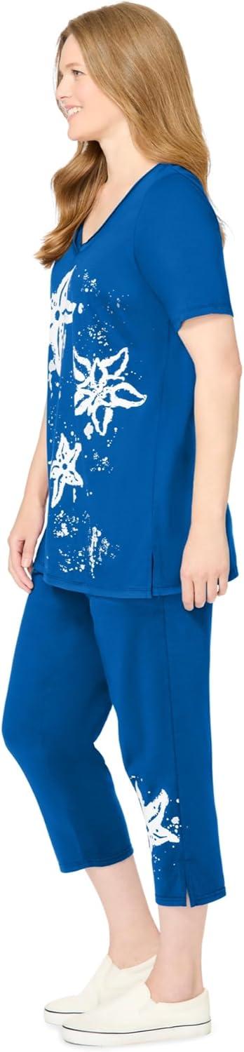 Woman Within Plus Size Starfish Tee and Capri Set(Bright Cobalt Starfish)