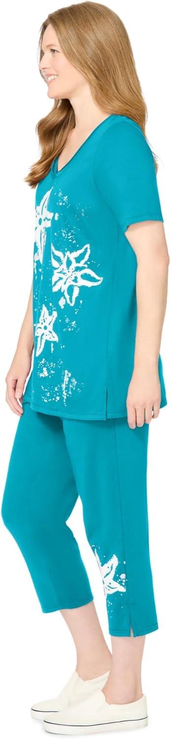 Woman Within Plus Size Starfish Tee and Capri Set(Pretty Turquoise Starfish)