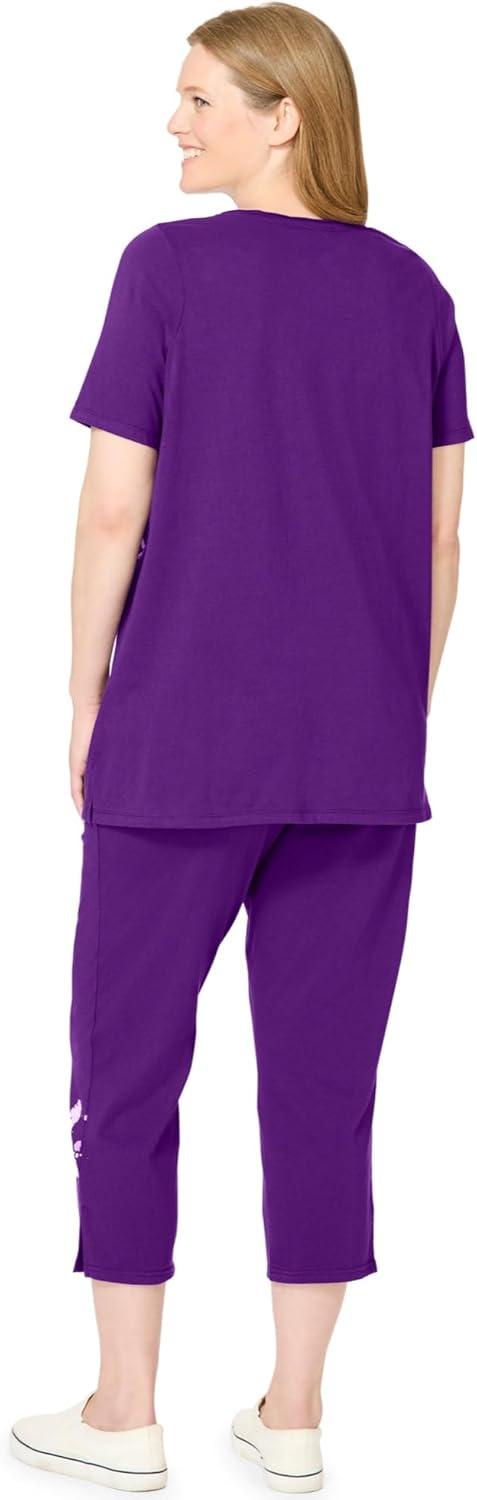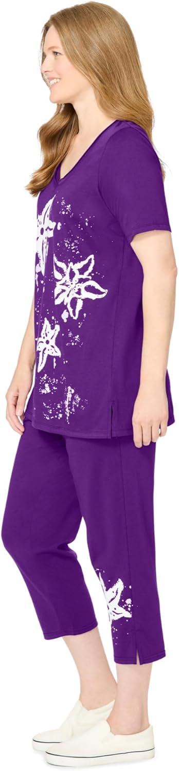 Woman Within Plus Size Starfish Tee and Capri Set(Radiant Purple Starfish)