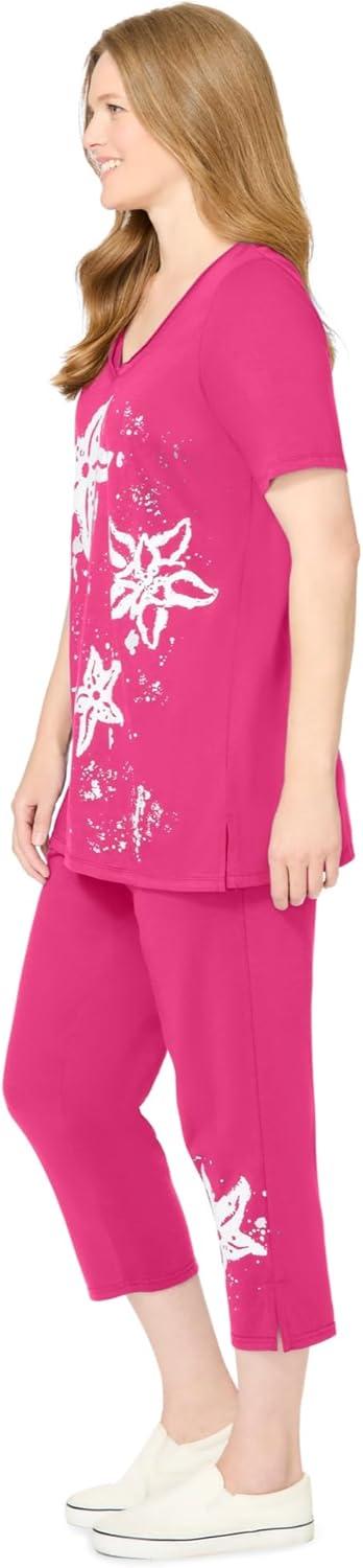 Woman Within Plus Size Starfish Tee and Capri Set(Raspberry Sorbet Starfish)