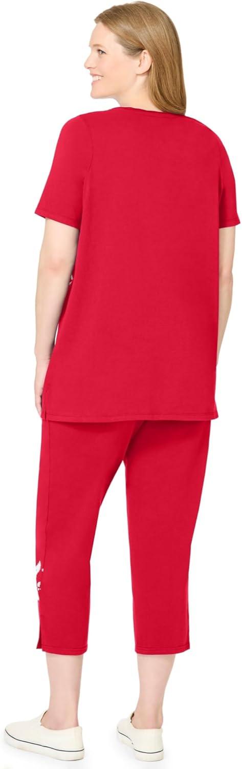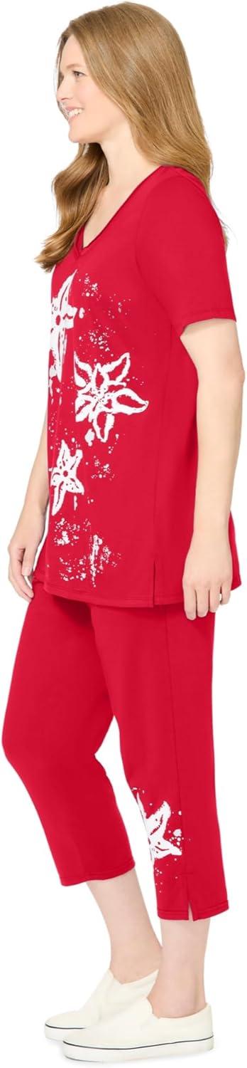Woman Within Plus Size Starfish Tee and Capri Set(Vivid Red Starfish)