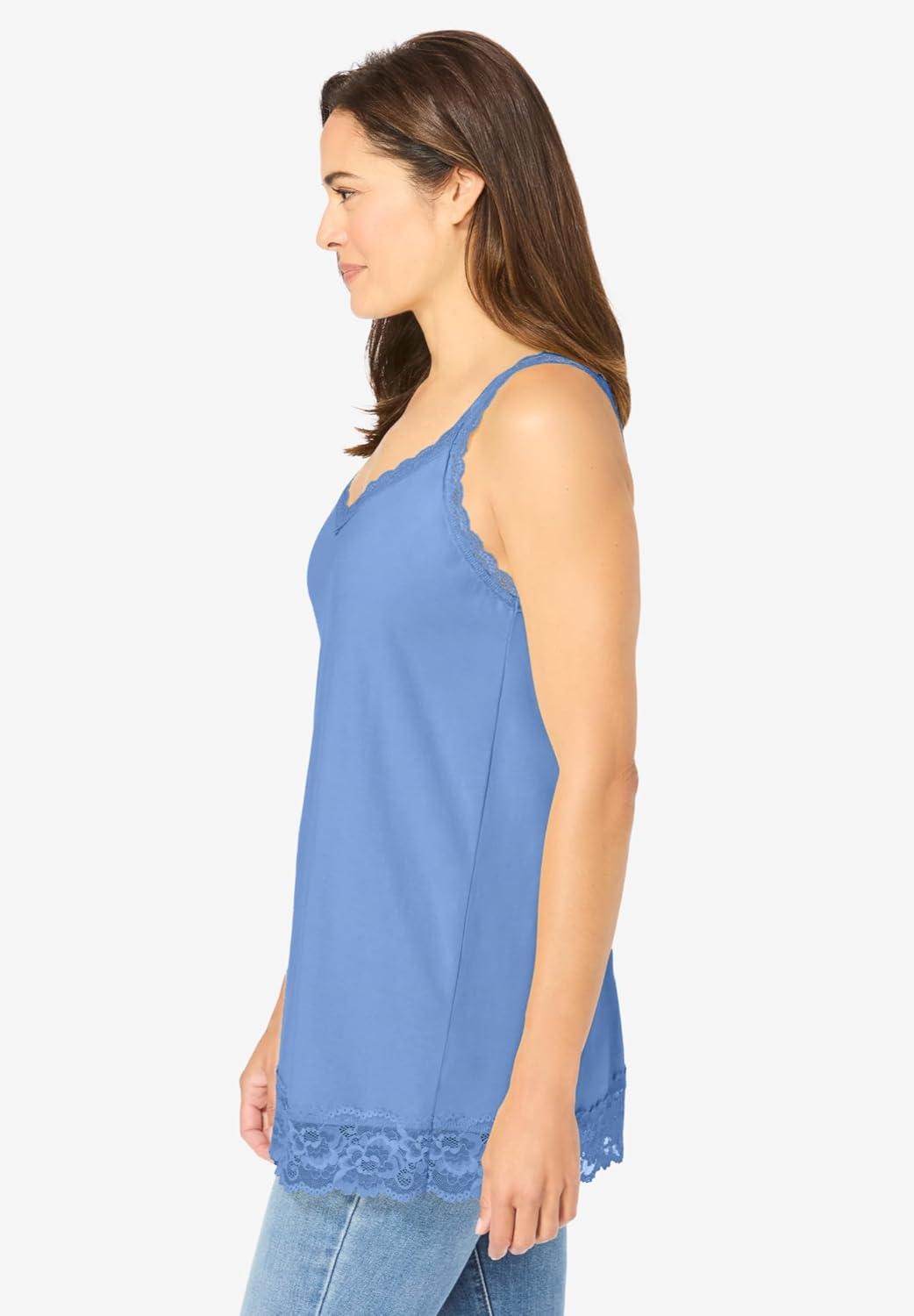 Woman Within Plus Size Lace-Trim V-Neck Tank(French Blue)