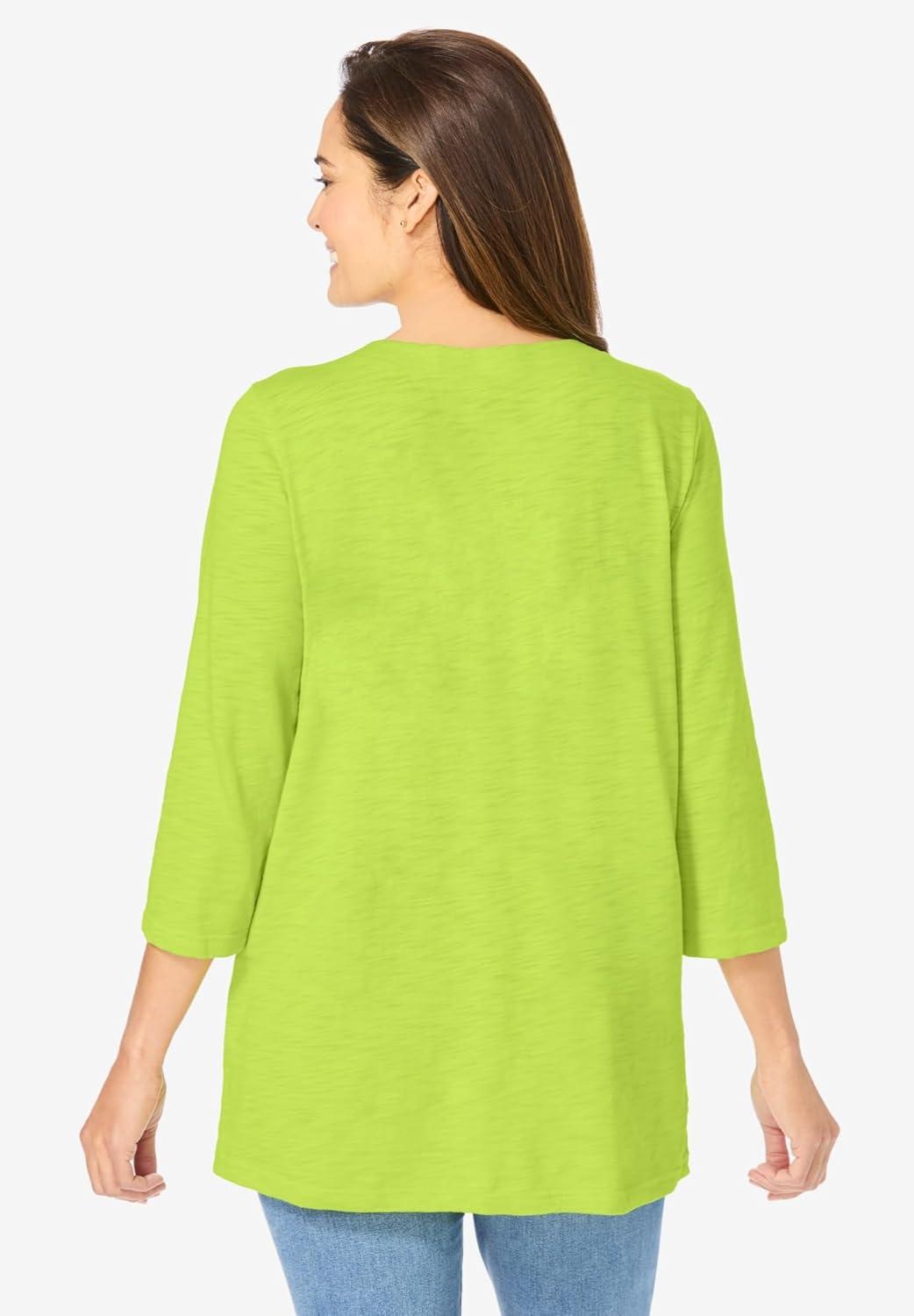 Woman Within Plus Size Lace-Up Three-Quarter Sleeve Tee(Pretty Turquoise)