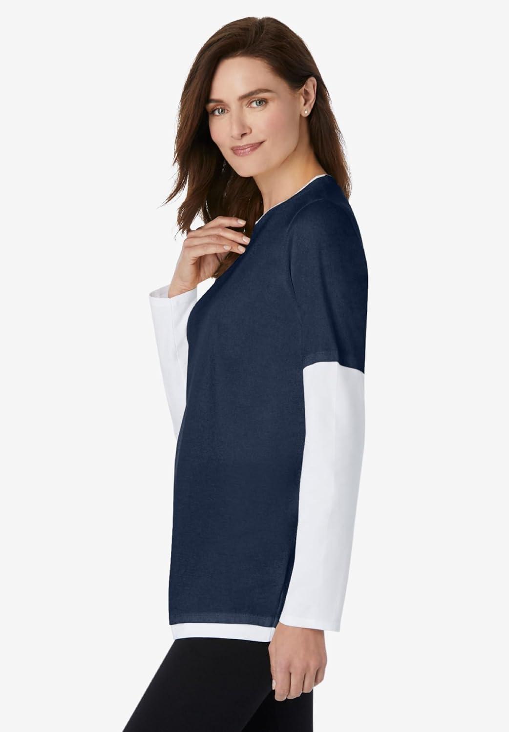 Woman Within Plus Size Layered-Look Crewneck Tee(Navy)
