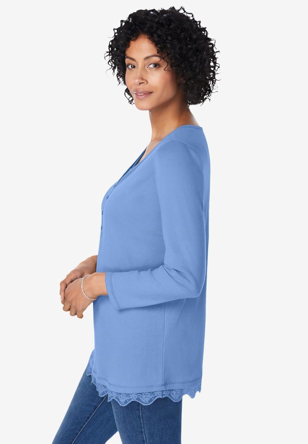Woman Within Plus Size Layered-Look Lace Trim Tee(French Blue)