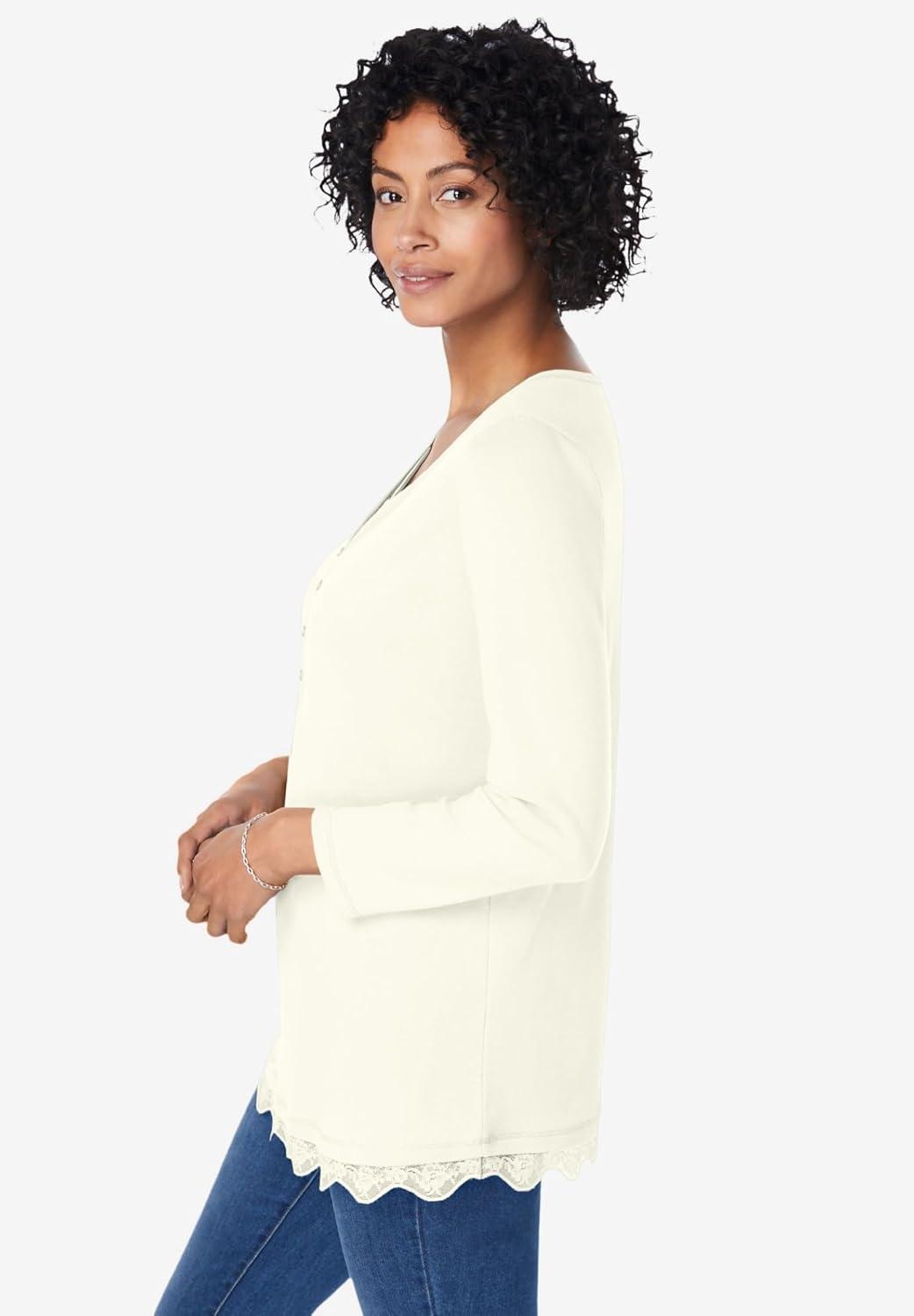 Woman Within Plus Size Layered-Look Lace Trim Tee(Ivory)