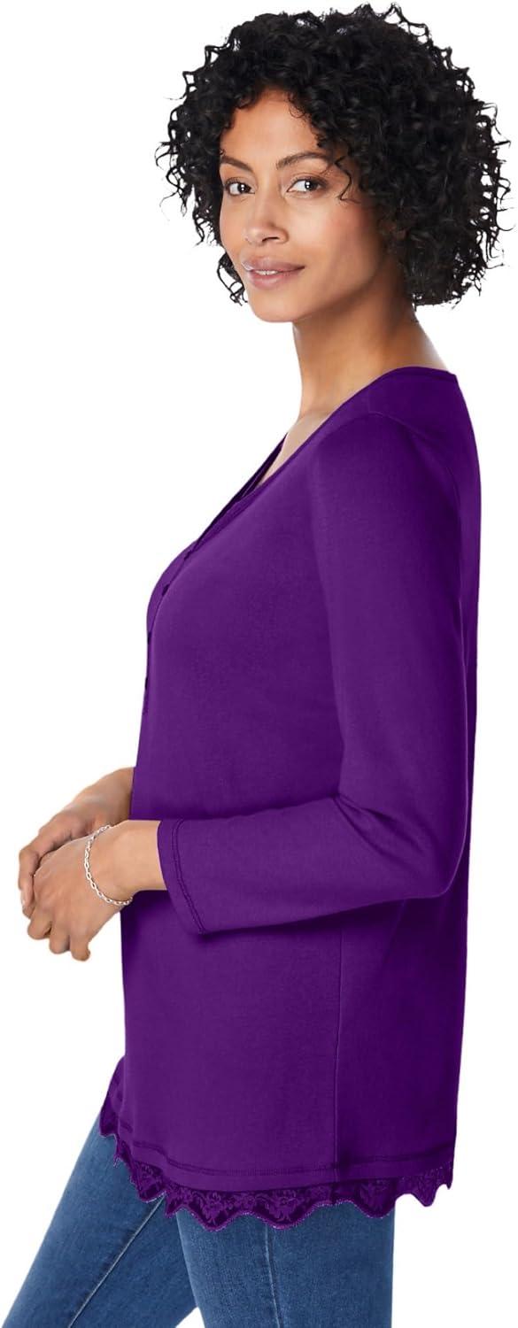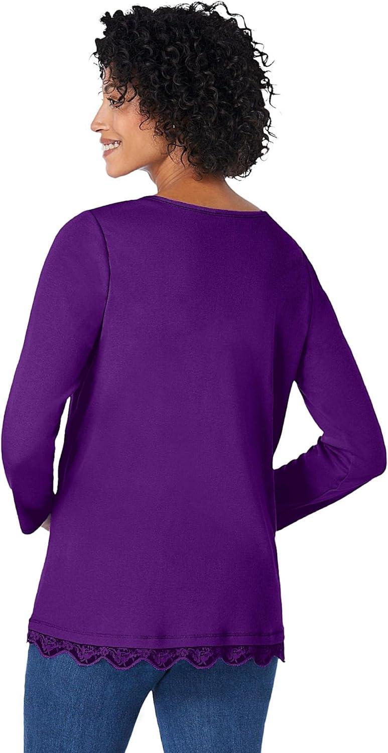 Woman Within Plus Size Layered-Look Lace Trim Tee(Radiant Purple)