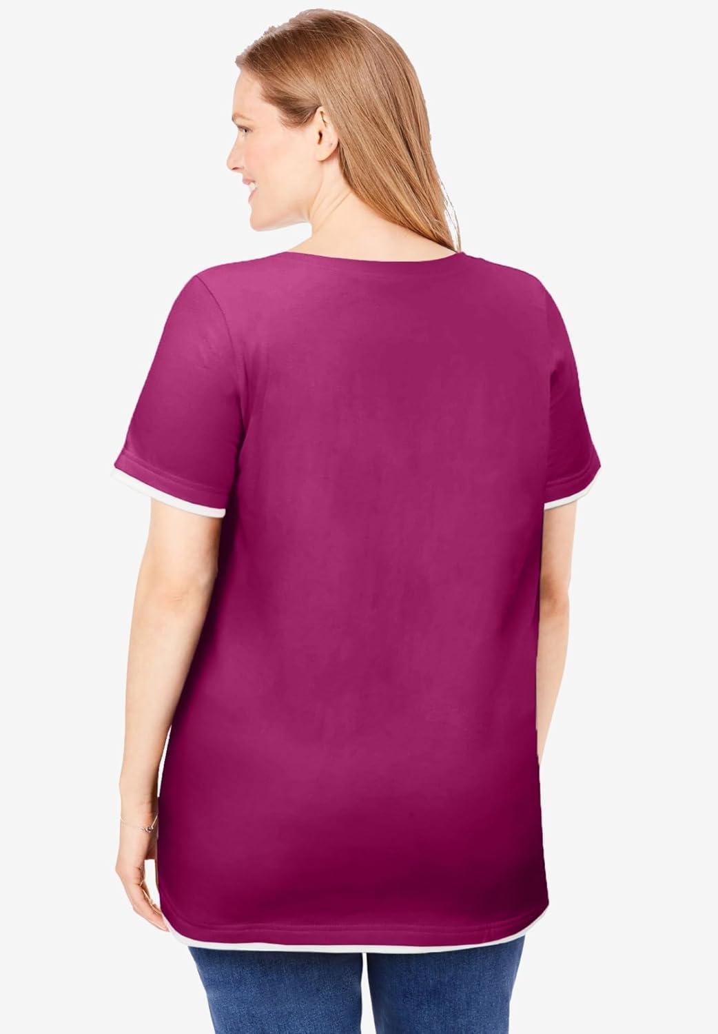 Woman Within Plus Size Layered-Look Crewneck Tee(Raspberry)