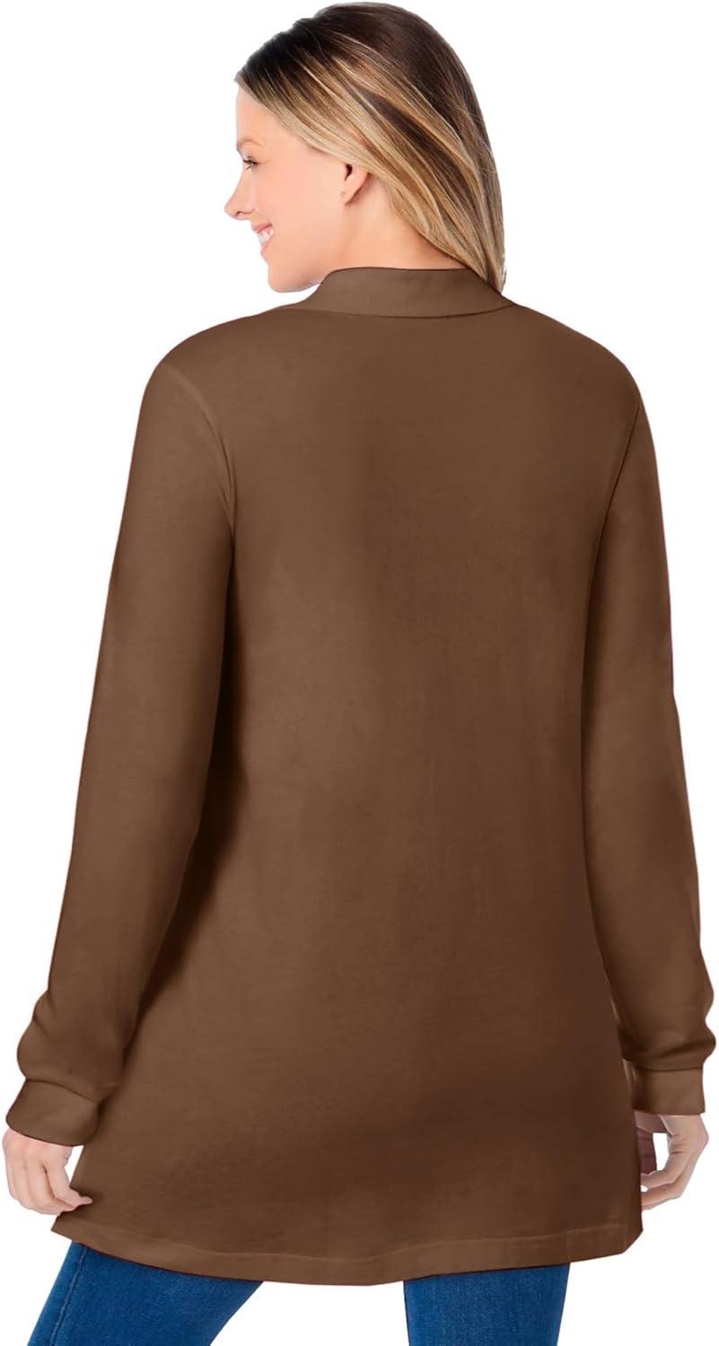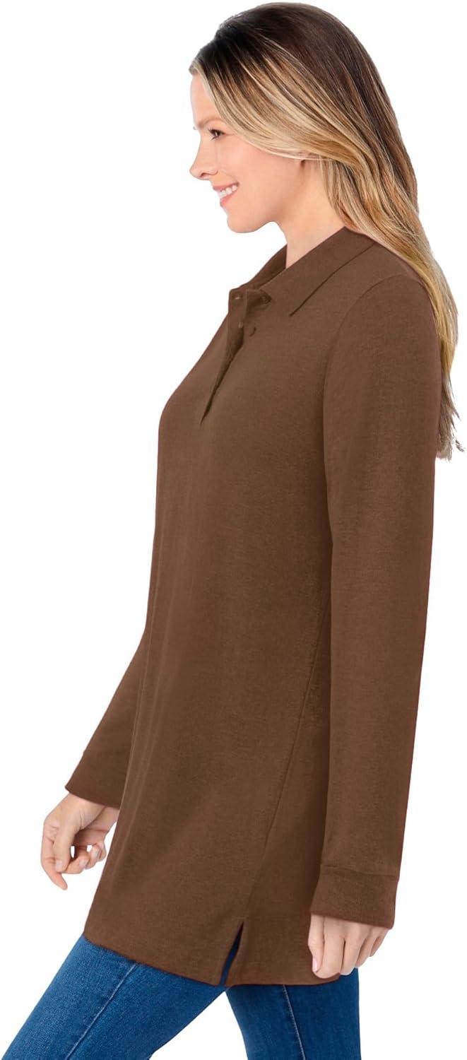 Woman Within Plus Size Long-Sleeve Polo Shirt(Chocolate)