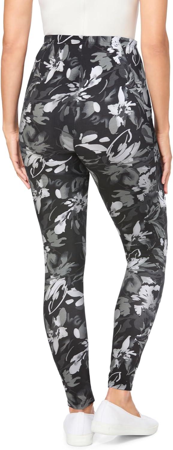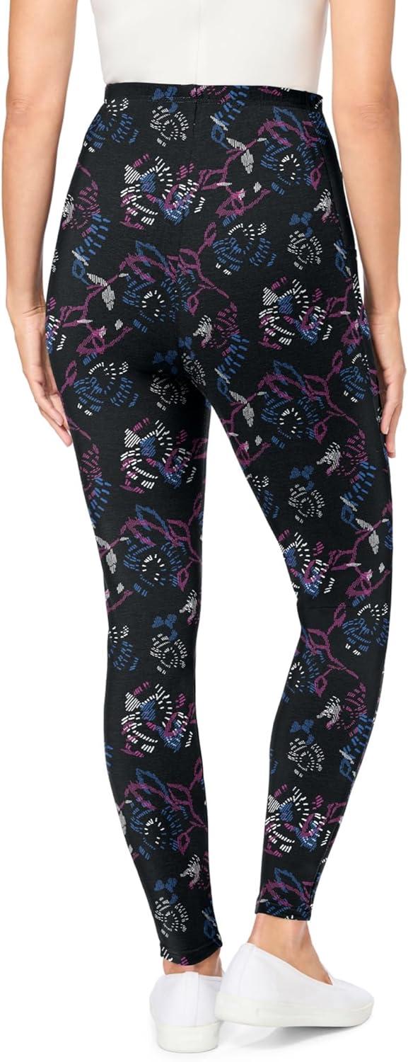 Woman Within Plus Size Tall Stretch-Cotton Knit Pull-On Printed Pocket Leggings(Black Splash Floral)