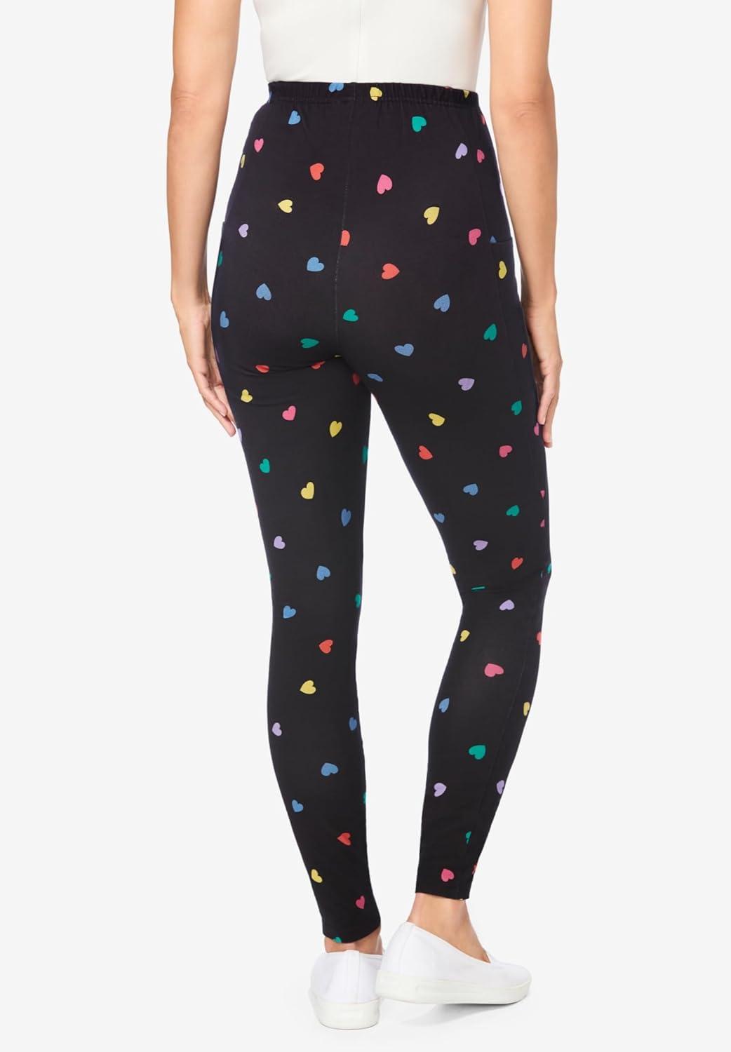 Woman Within Plus Size Tall Stretch-Cotton Knit Pull-On Printed Pocket Leggings(Black Multi Hearts)