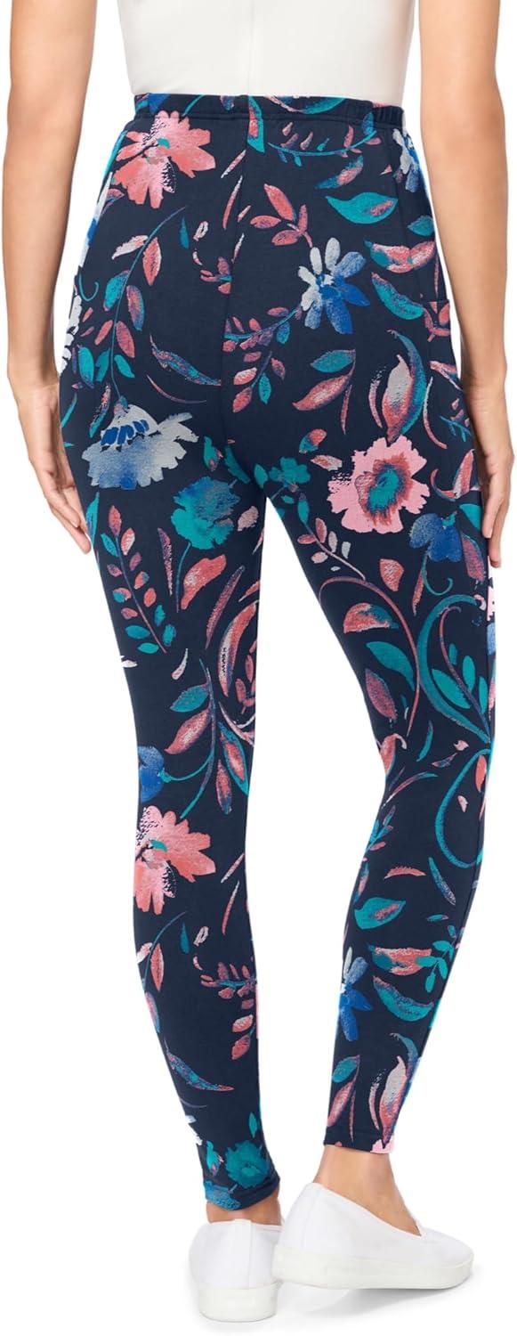 Woman Within Plus Size Tall Stretch-Cotton Knit Pull-On Printed Pocket Leggings(Navy Coral Multi Floral)
