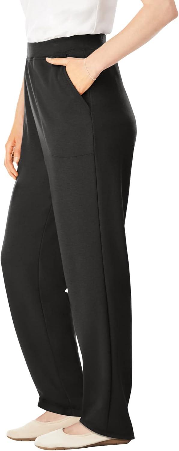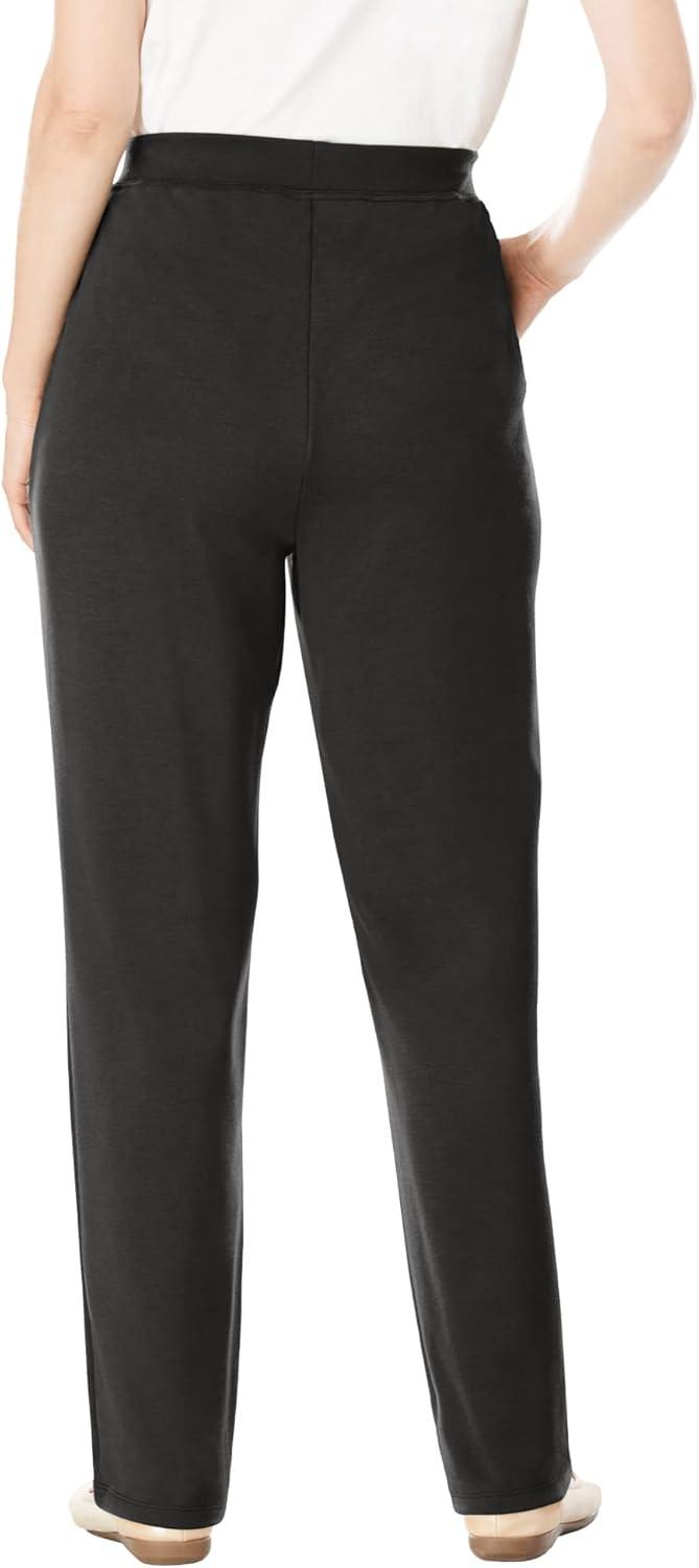 Woman Within Plus Size Tall Sport Knit Straight-Leg Pull-On Pants(Black)