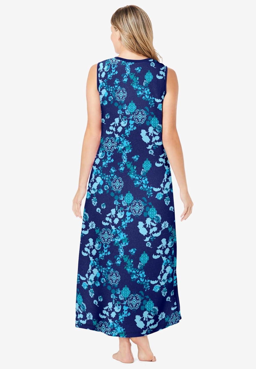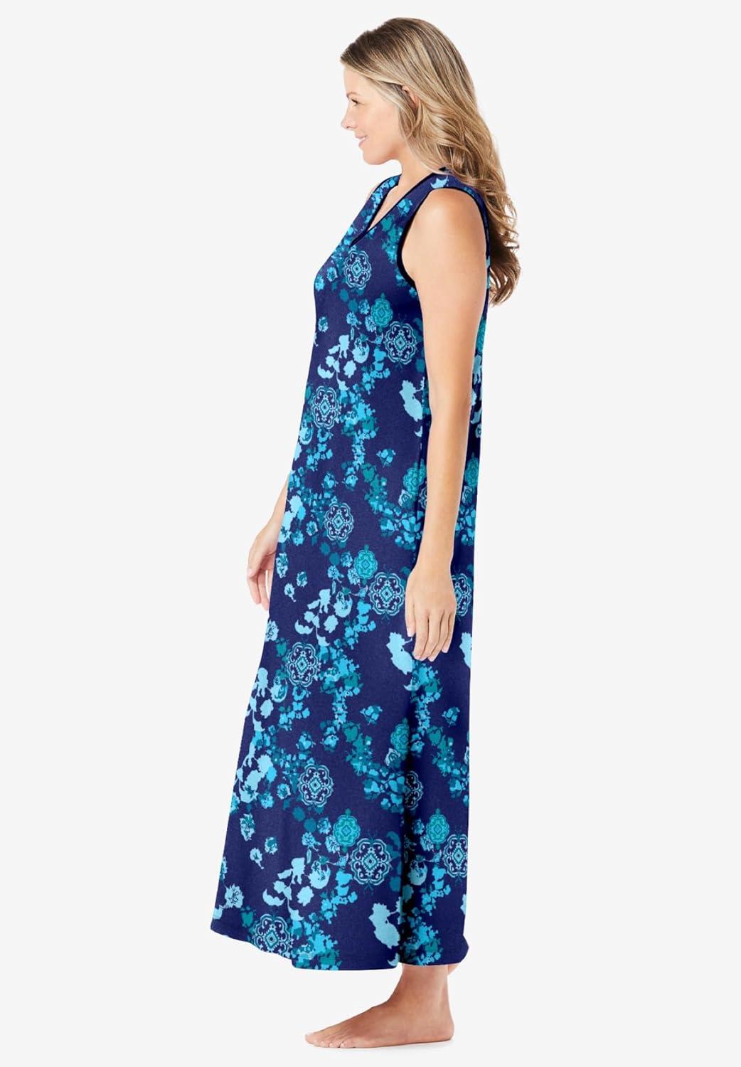 Dreams & Co. Plus Size Trapeze V-Neck Lounger(Evening Blue Peony)