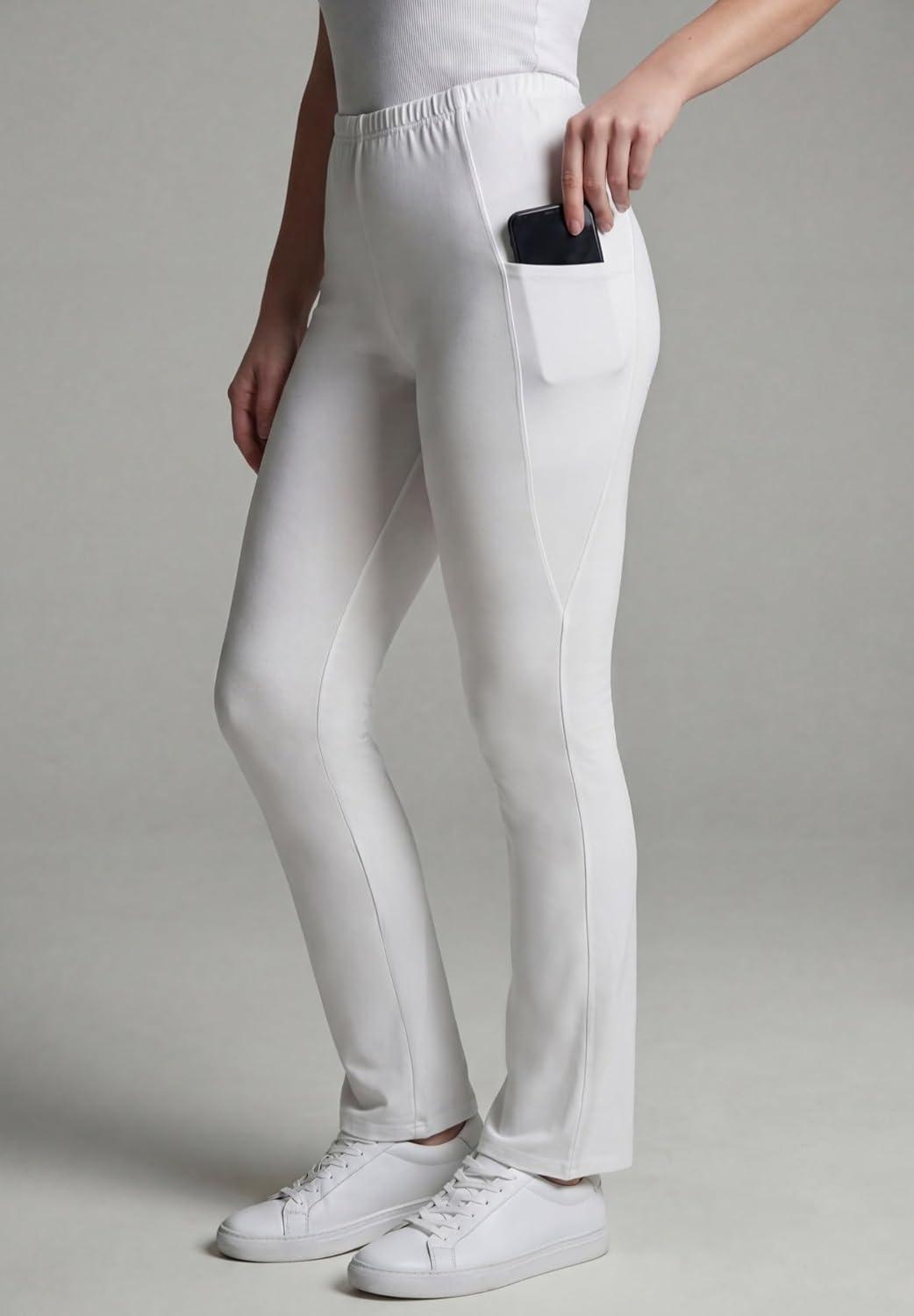 Woman Within Plus Size Tall Stretch-Cotton Knit Pull-On Bootcut Pocket Leggings(White)
