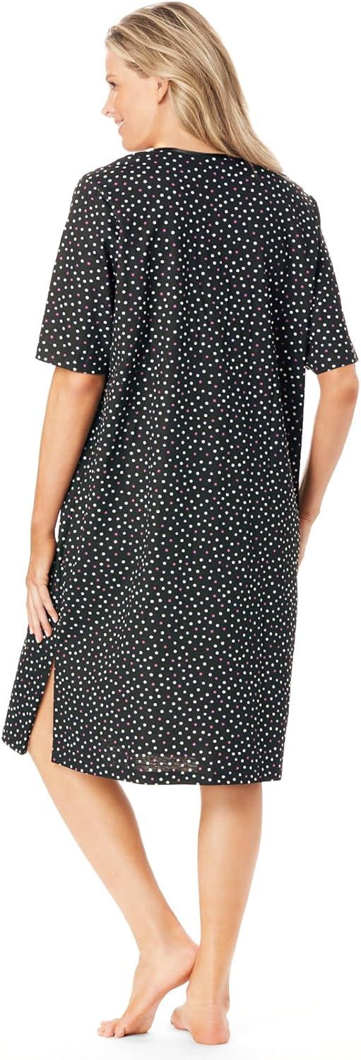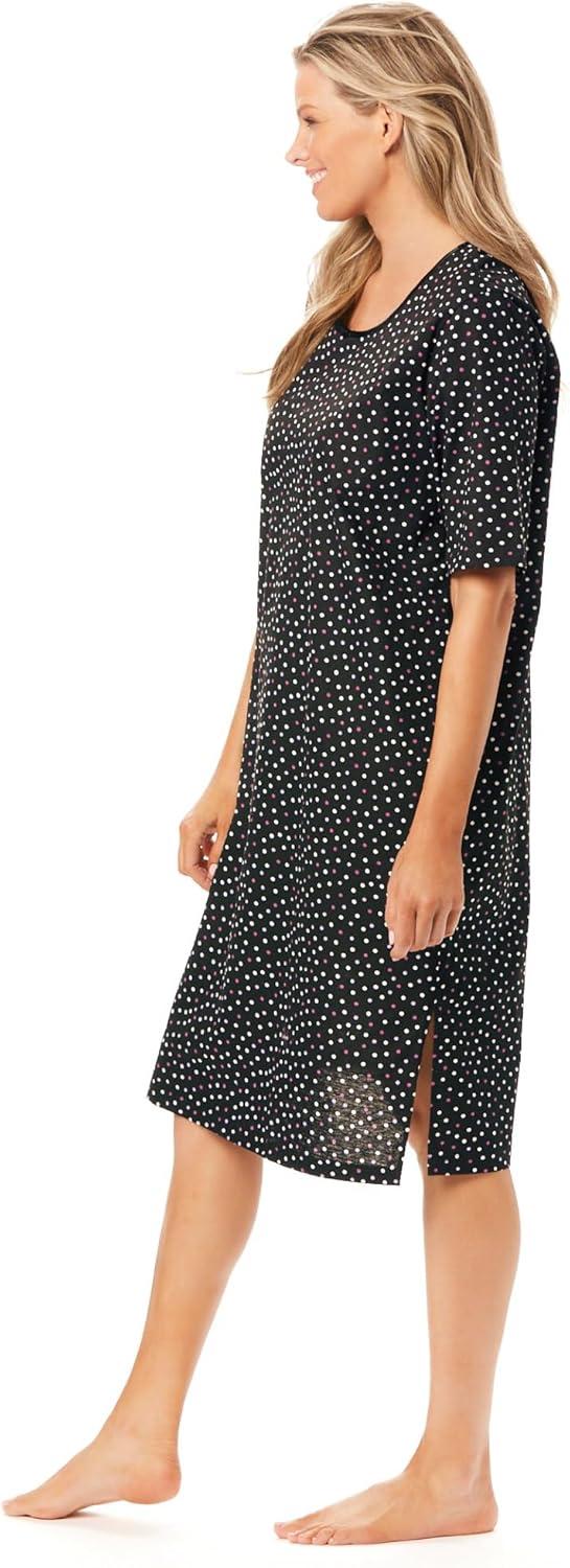 Dreams & Co. Plus Size Short-Sleeve Sleepshirt(Black Multi Dot)