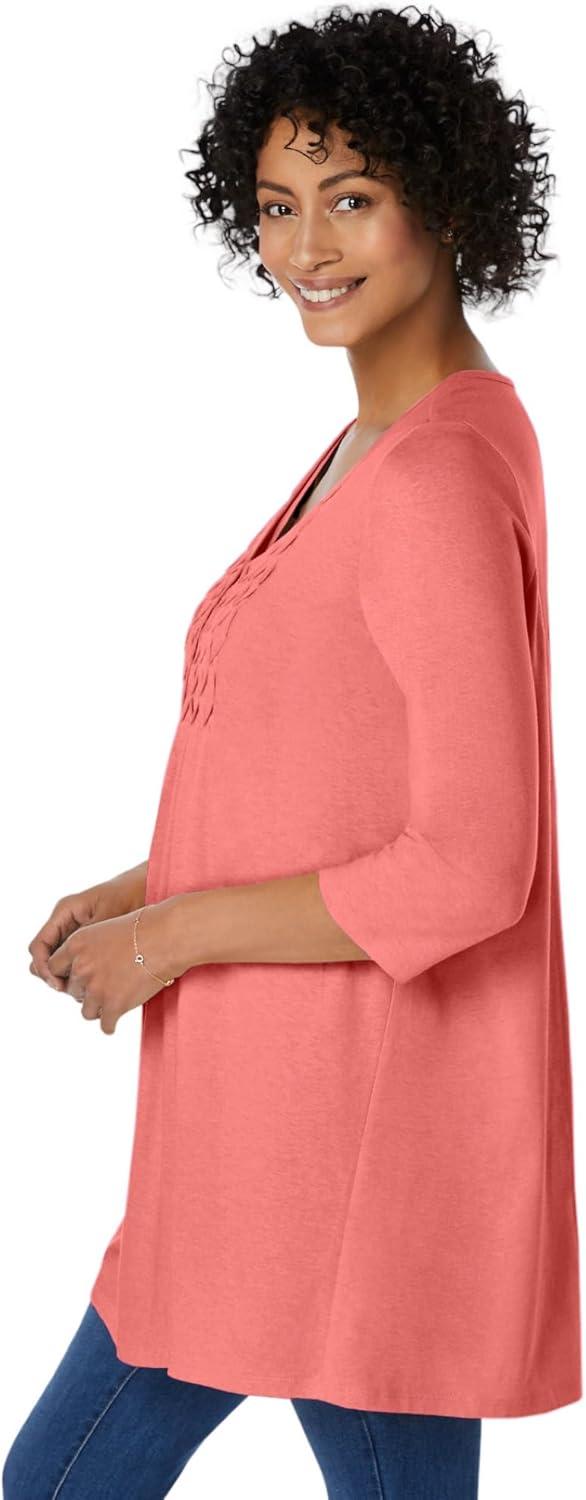 Woman Within Plus Size Smocked Henley Trapeze Tunic(Sweet Coral)