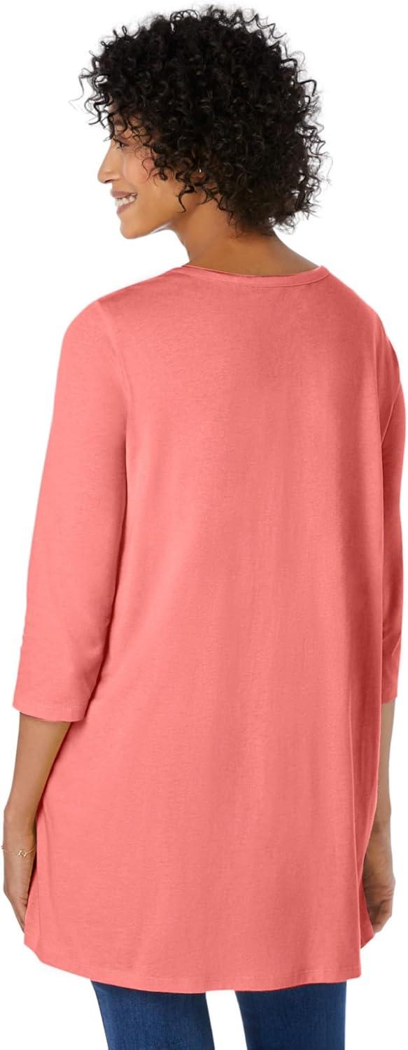 Woman Within Plus Size Textured Pointed Hem Tunic(Sweet Coral Floral)
