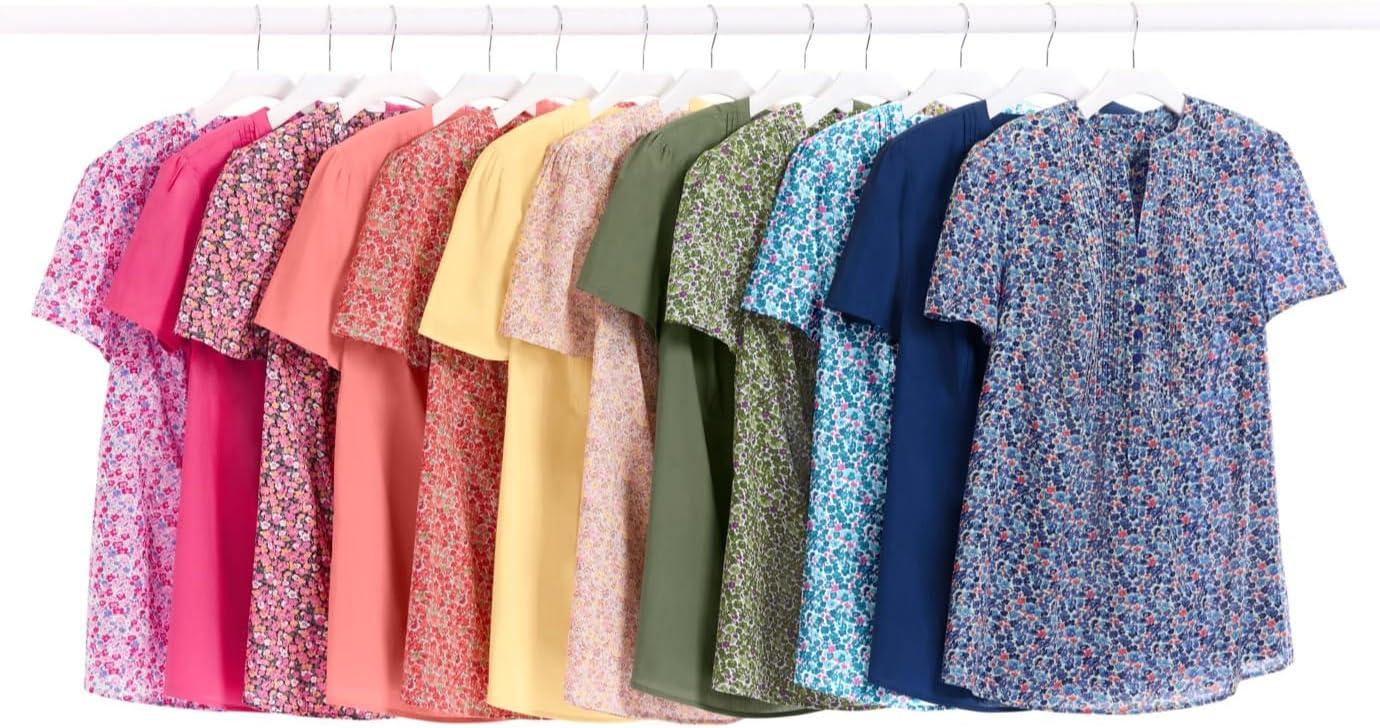 Woman Within Plus Size Perfect Short Sleeve Button-Down Shirt Oversized Tunic Blouse(Black Floral)