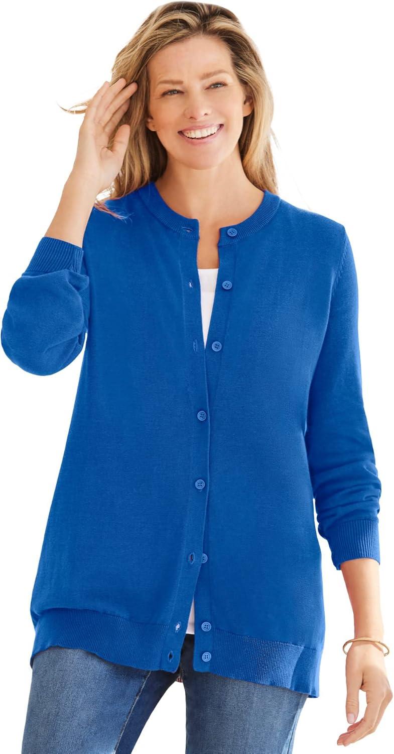 Woman Within Plus Size Perfect Long-Sleeve Cardigan Sweater(Original Bright Cobalt)